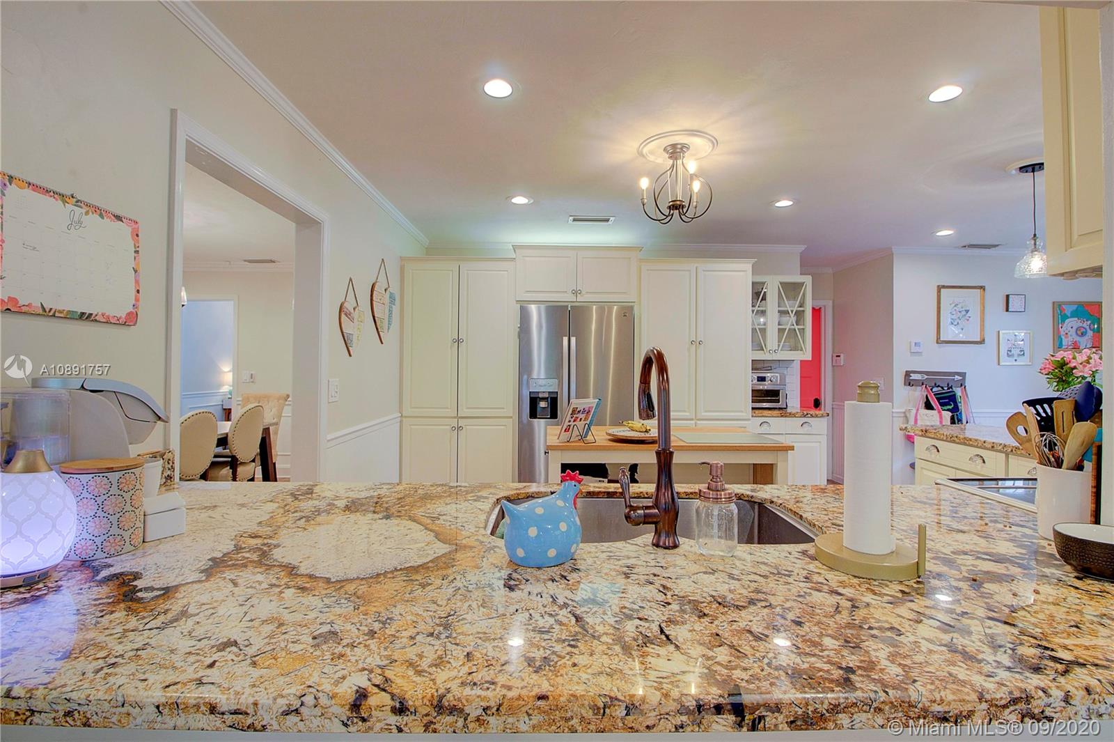VIRTUAL & PHYSICAL TOURS AVAILABLE! Hollywood Hills home of the quarter AWARD WINNER, Custom remodeled home features over 2400sq, 3 bedrooms/2 baths+den which can be converted into a 4th. Outdoor area for entertainment & tons of space to build a pool.French country designer kitchen with solid wood cabinetry, new stainless appliances & walk in pantry.Wood floors throughout with marble tile in guest bath & penny tile in master. Crown molding throughout, wainscoting on walls & craftsman solid core 5 panel doors. Oversized living room with floor to ceiling windows looks out over landscaped backyard surrounded by foliage. Master features double doors leading to the en-suite with walk in closet + a second closet in the bedroom area. Windows doors & garage door are certified impact.New AC in 2018