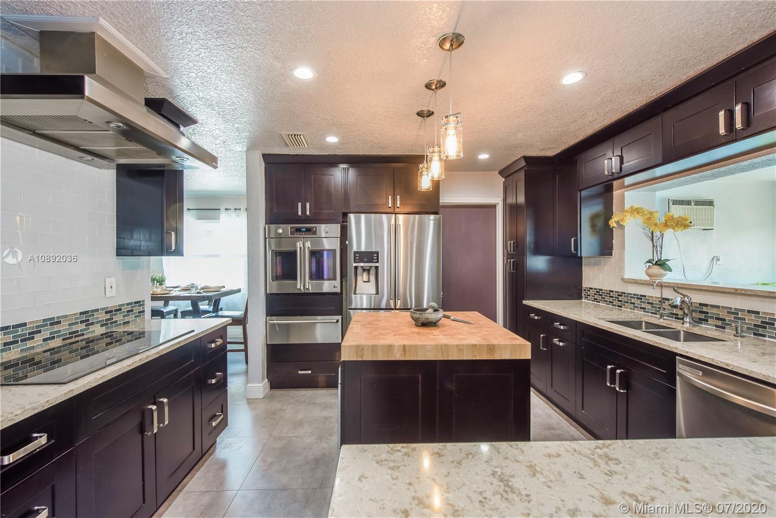 Sophisticated Cozy & Contemporary style inspired! Immaculate home freshly painted w/ Hurricane impact windows W/ an inviting curb appeal. Step inside & admire the open floorplan, & gorgeous 24” porcelain tiles. Kitchen is a masterpiece, designed by a Chef in 2017 w /all the must haves. Wood cabs, white slate & glass tile backsplash, granite counters & 36” prep island w/ 3” thick butcher block counter. GE café series twin door convection oven w/ warming & proofing drawer, 5 burner induction cooktop w/ an external exhaust hood. Under counter microwave, brand new dishwasher & more. Newly installed laminate flooring, newer roof, AC, pool pump & brand new sprinkler pump & water heater. The icing on the cake, large covered patio & fenced yard perfect for entertaining. ** Agents Pls Read BRemarks