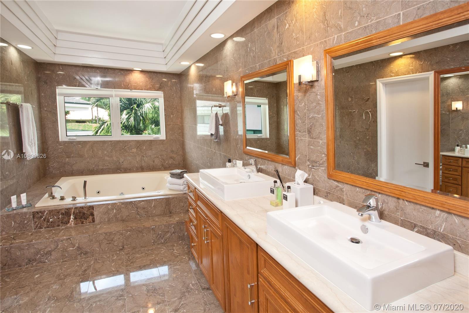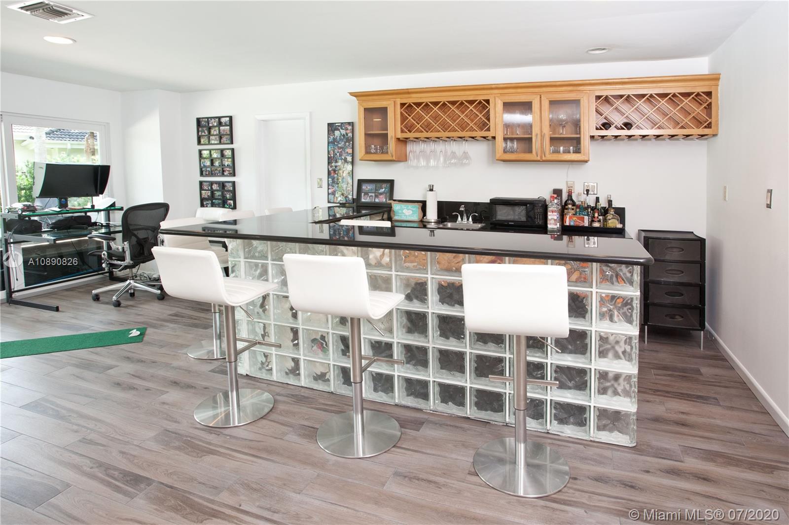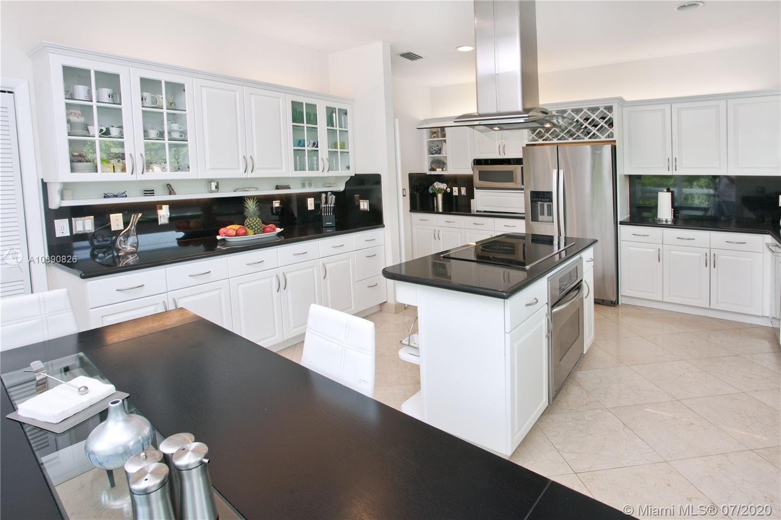 Spacious home in Islands of Cocoplum. From foyer landing, step up to large living rm w/high ceilings & glass doors overlooking pool/patio. Spacious formal dining rm. & guest suite off living rm. Kitchen w/granite counters, cooking island, opens to eating terrace & staircase leading to the pool & patio. Bedrm wing has a large main bedrm w/2 walk-in closets, large bathrm w/separate shower/tub & double sinks. There are also 2 very spacious suites. Large bonus area w/2 entertainment spaces w/wet bar, cabana bath, & additional spaces that can be used for playroom, recreation, gym, storage, etc. 2-car garage, covered terrace, pool w/cascade, fence & privacy hedge. The property also offers a small playground area. 2017 impact windows/doors, 2016 roof and 2018 A/C units