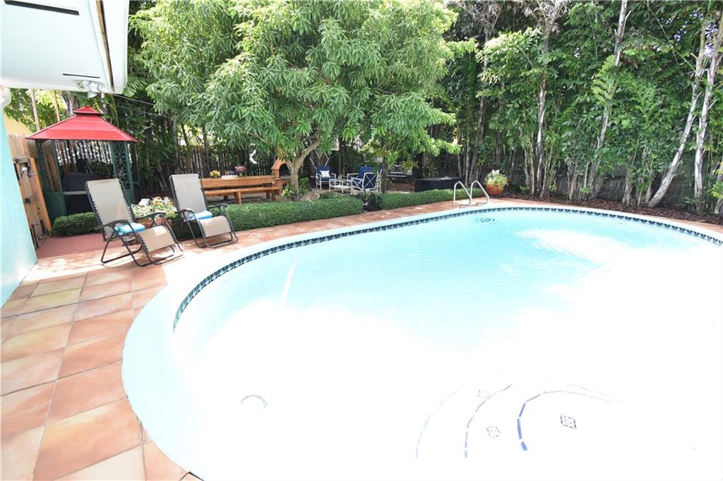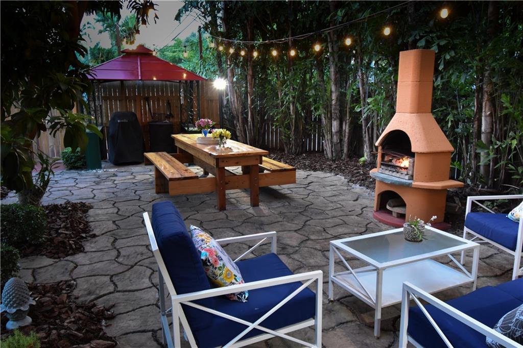 ENTERTAINMENT AND ZEN MASTERPIECE!. See this remarkable home only a few miles from the beach! This home has it all, including a picture-perfect backyard ready for some yoga sessions during the day and some entertaining or peaceful nights in the pool under the stars. Enjoy the outdoor oven and picnic table for family or friends and make some great memories. Mr. and Mrs. Clean live here with an open layout and modern touches with plenty of bright light through the upgraded shutters on all windows. Enjoy upgraded bathrooms and kitchen with granite countertops and cooking island. Relax in your covered and secure patio with impact doors and separate a/c with electric shades and snack bar to the kitchen—great curb appeal with circular driveway in front and one car garage in the back.