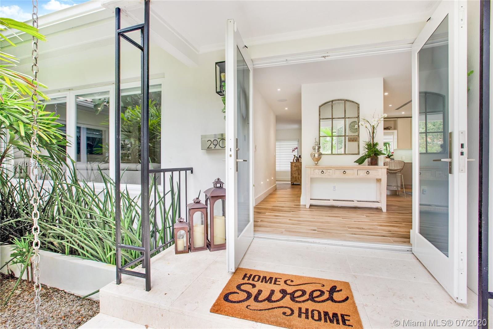 2018 exquisitely remodeled, 4/3 home in the most beautiful area of Coral Gables, walking distance to Biltmore Hotel and Salvadore Park. A one of a kind island lot, almost 17k sqft property. Clean, Italian porcelain floors all throughout with new bathrooms and custom cabinetry in all the closets, bathrooms and garage. Brand new A/C (July 2020), with updated septic tank system (May 2020). It's a SMART home with all new electric work (2018). One of the few Coral Gables properties with NATURAL GAS!!This unique lot has luscious landscaping all around (with Mango, Avocado, and Lychee trees) and is perfect to create the outdoor oasis of your dreams. Property is sold with approved permits for a pool and a fence all around for even more privacy *pictures of renderings provided*
