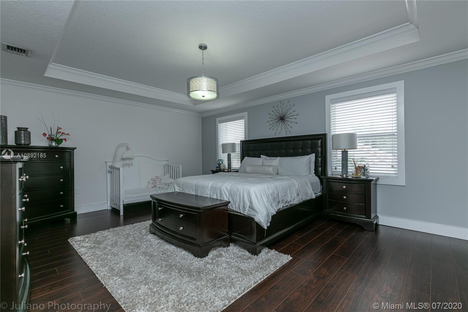 This beautifully updated Grande Cay of Silver Lakes pool home features 4 Bedroom / 2.5 Baths, 2 car garage, white ceramic tile and wood floors throughout, an Italian-style kitchen with top of the line appliances, and new glass staircase railings. Every room and bathroom has been completed updated with new floors, crown moldings, high-hat lighting, and textured ceilings. Tenant occupied until 8/15/2020. Tenant is not allowing access until Monday 7/20.