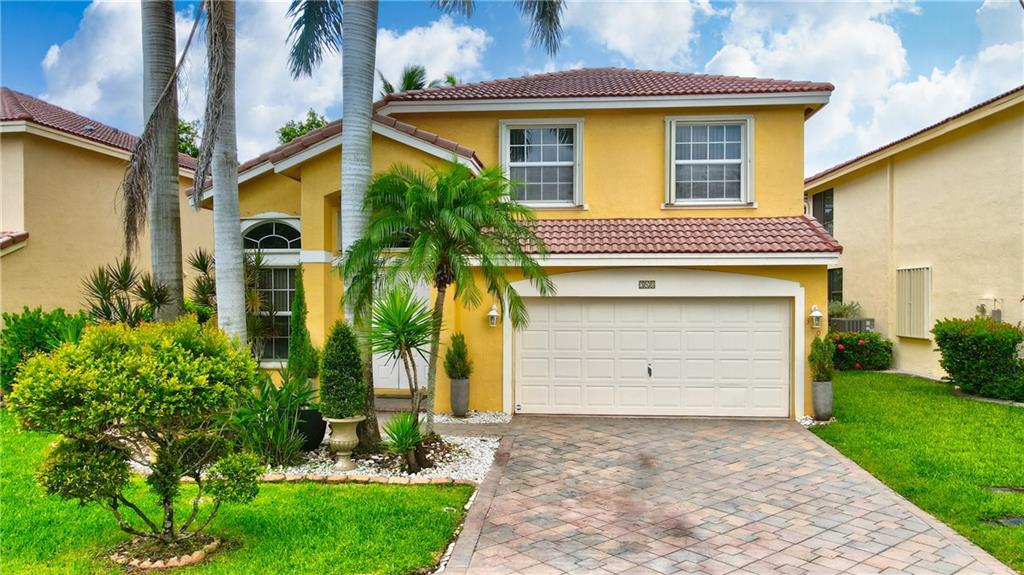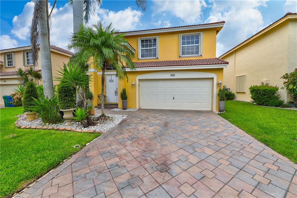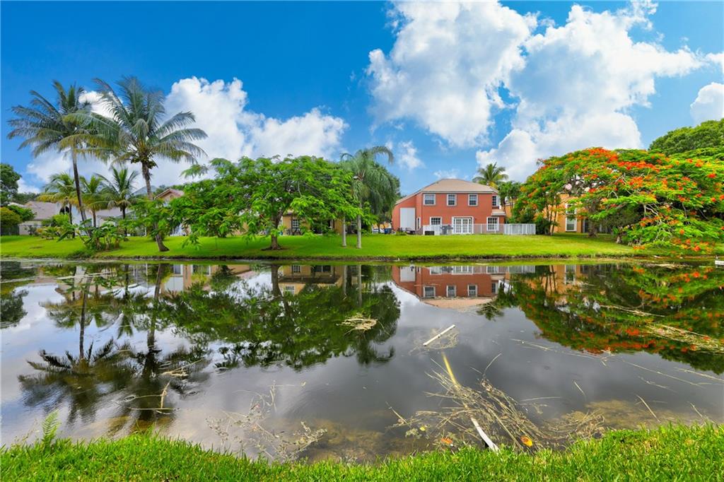 Large, light, bright & updated! Summer Wind in Coral Springs! Tranquil setting on the water w/excellent views from the house, yard & large paver patio deck. This home features beautiful custom cabinetry in the kitchen with spectacular solid surface counter tops & stainless steel appliances. Spacious rooms w/great natural light. Tile flooring throughout the ground floor and laminate flooring upstairs. There is a large bedroom and bathroom on the ground floor as well as the living room, family room, dining area, kitchen with snack counter and full size laundry room. Upstairs features; master suite with separate shower and tub, large master closet and two guest rooms and another full bathroom. Great community, convenient to all major roadways. Accordion shutters and storm panels on property.