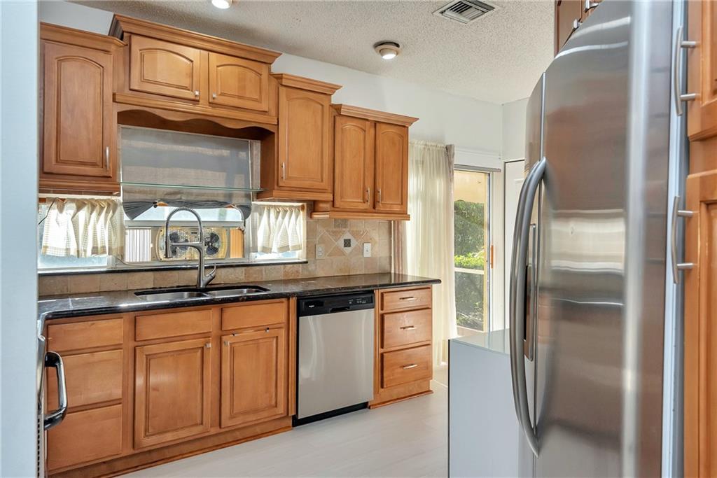 Large & bright 4/2.5 town home with full two car garage. A rare find in sought Portofino community. Features wrap around screened in patio with amazing view of canal and lush green areas. Elegant architectural details throughout include circular ceiling fascia in dinning room, long vertical window panels and more. New European collection SPC flooring throughout Kitchen has granite counter-tops and stainless steel appliances. Upgraded bathrooms and light fixtures. Brand new full sized side-by-side washer & dryer. HOA is responsible for roof maintenance & repairs, insurance and water is included. Won't last...hurry before it's gone.