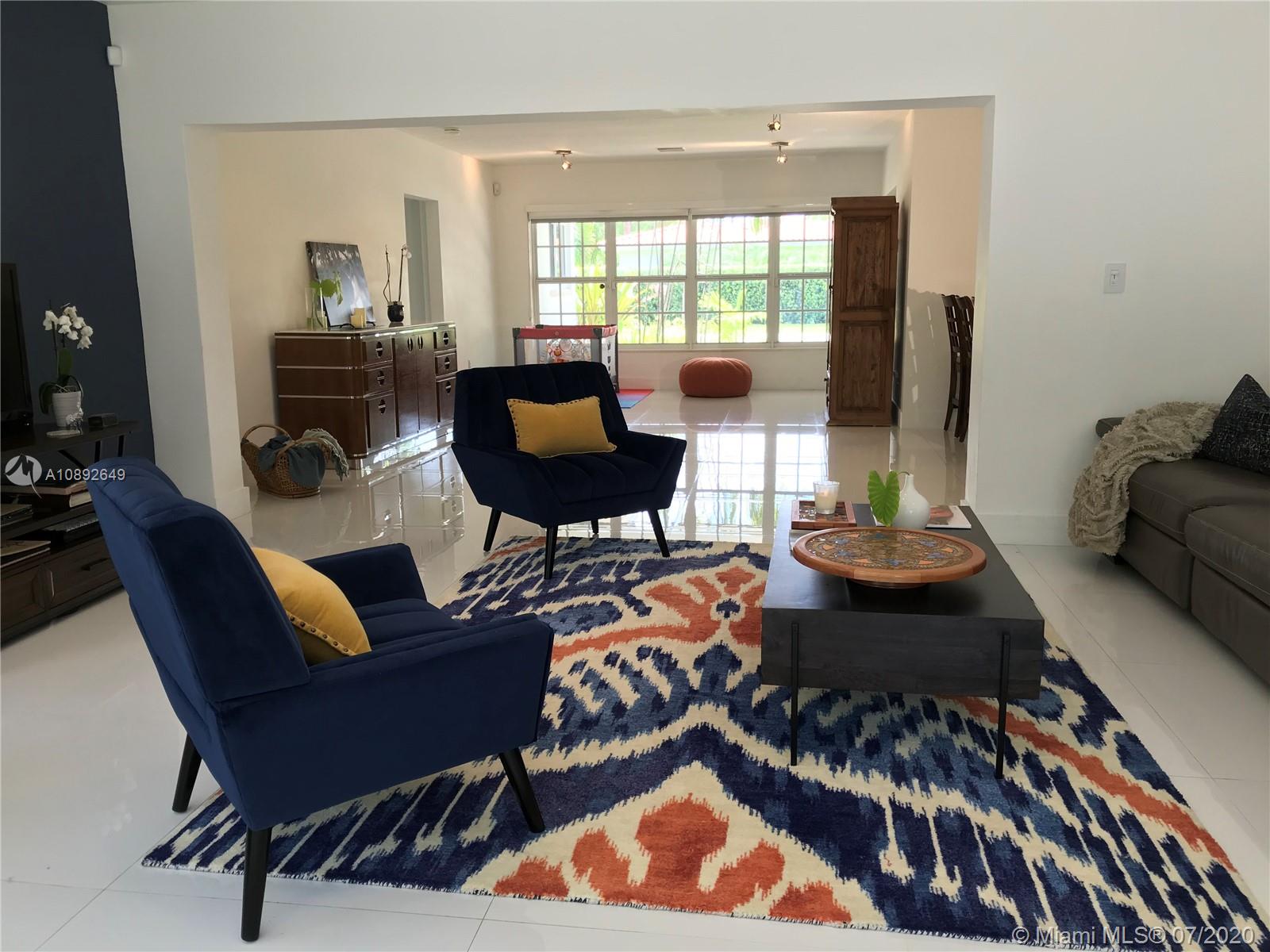 Luminous spacious home w/all impact windows&doors, white porcelain flooring throughout w/a split 3/2 floorplan.Large kitchen granite countertop, equipped w/all new Samsung stainless steel appliances.Built-in surround sound system, Nest,&ADT system w/security camera.Dining room &family room overlook the garden&large salt water pool with jacuzzi that is surrounded by a new security baby gate.The master bedroom suite faces northeast allowing plenty sunlight has a built-in walk-in closet& bathroom.The 2 other spacious bedrooms have large built-in closets. Fenced private yard w/a 1 car garage on an oversized corner lot. Architectural plans ready to elevate & convert garage to another bedroom for flood mitigation due to rainstorms and king tides flooding garage & around the home on the property.