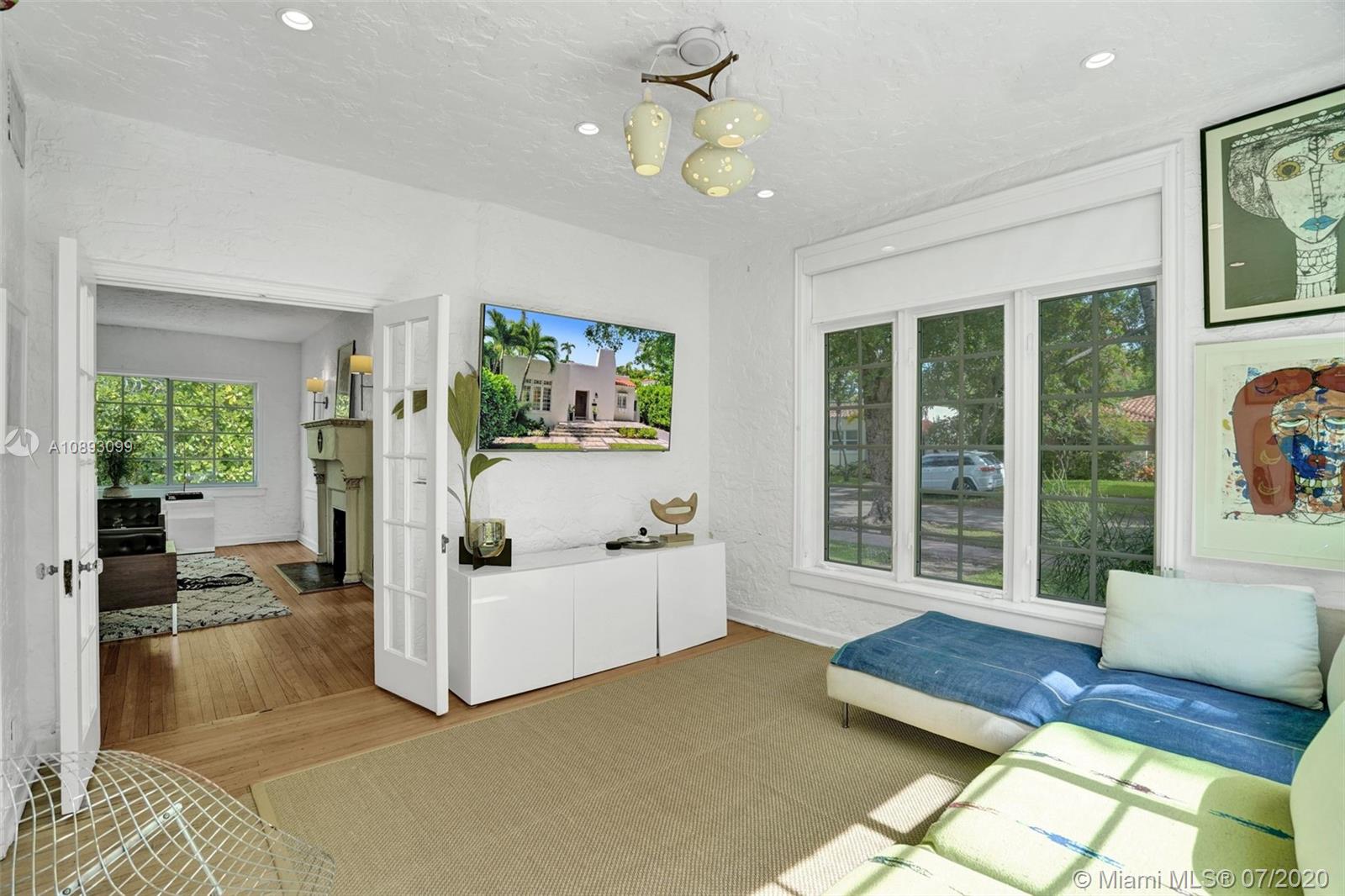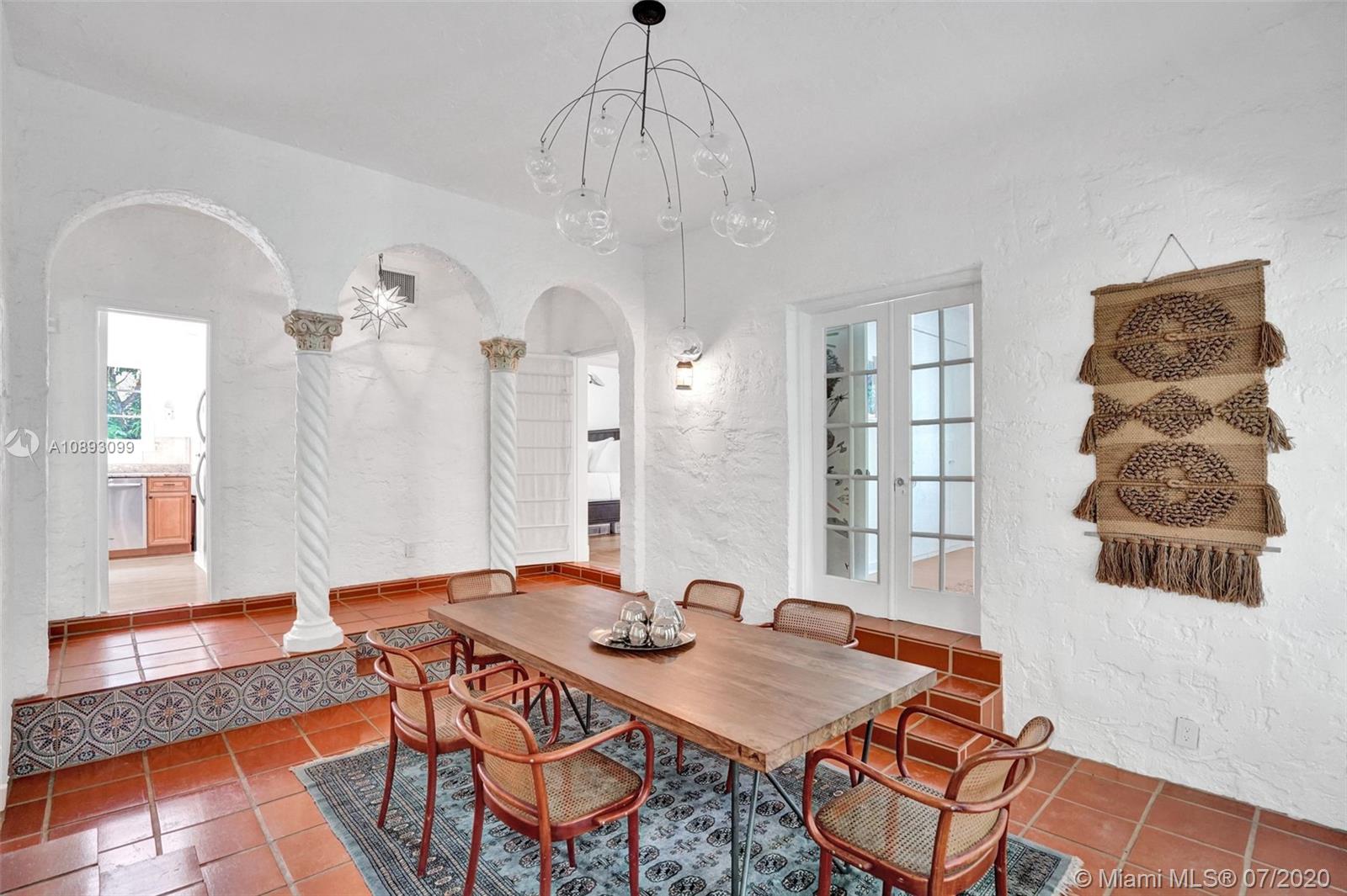 Raise una copa to this truly unique Old Spanish casita just outside of Downtown Coral Gables. Restored decorative elements highlight a modern, sun-drenched flow and layout that beautifully ties the lush garden views into every living space. Notable updates include PVC plumbing throughout, contemporary landscape, entrance steps with pavers and driveway, bleached and refinished original wood floors, new bathrooms with decorator tiles, and irrigation system. Home also features impact windows, wood kitchen cabinets, back and side yards with patio areas and detached garage. All in the heart of the City Beautiful. Make this little piece of the Gables’ rich history yours.