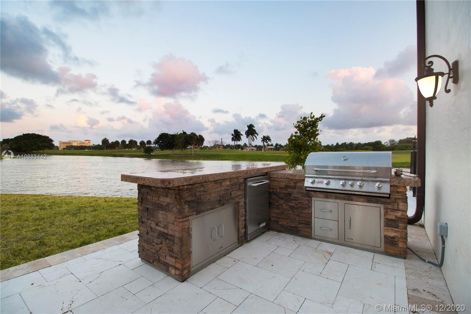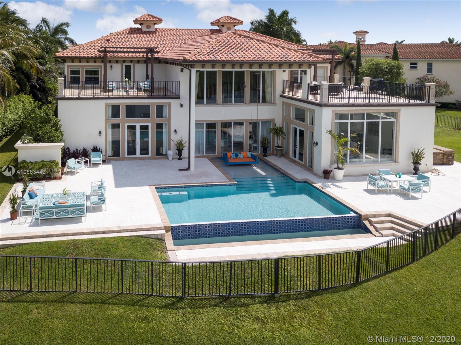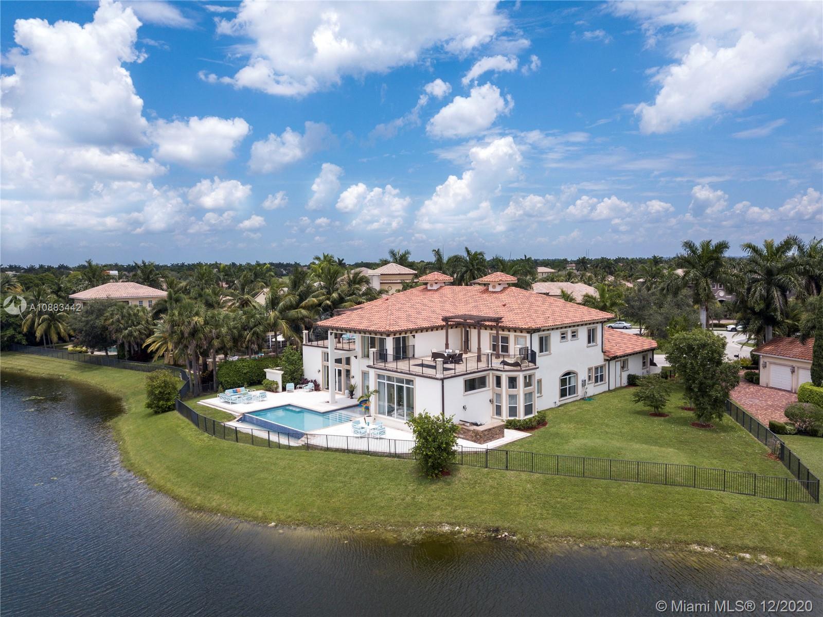 The Ideal Estate built in 2016 on arguably the best waterfront lot with open Golf Course views in the exclusive gated Heron Estates division of Heron Bay community with no rear neighbors. This unique home boasts an expansive smart layout with a grand entrance, dramatic staircase & sprawling living areas. Featuring 7 bedrooms with a large private master suite, 6 full baths and 2 half baths, separate office, additional upstairs family room, maid’s quarters with oversized laundry room and more. Enjoy panoramic views from every room with floor to ceiling impact windows and over 1,500 sq ft in outdoor terraces. Experience unmatched sunset views lounging by the infinity edge pool & outdoor kitchen area. It is truly a must-see on a half-acre peninsula-shaped lot situated on a private cul de sac.