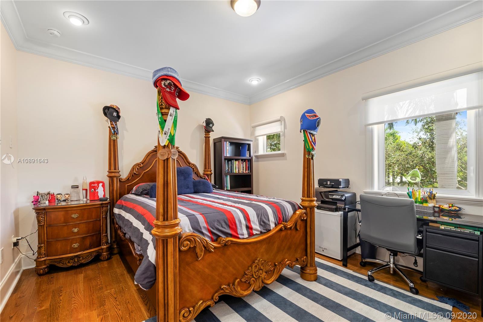Enjoy pure elegance. 6 bdrm/ 6.5 bath gated estate in the Village of Pinecrest. Fantastic floor plan, flooded in natural light. Grand formal entry, volume ceilings, sweeping staircase & expansive formal living rm. Formal dining rm. A chef’s kitchen, outfitted w/ Viking appliances, large prep island, eat in/ snack bar & breakfast nook all open to family rm. White marble floors. 2 bdrms, en-suite, downstairs perfect for guests. 4 en-suite bdrms upstairs, w/ wood floors, including spacious master complete w/ office/sitting rm, balcony, large bath & walk in closets. Wonderful fenced backyard, paver patio, partially covered, pool w/ spa perfectly placed to maximize entertaining space. Paver drive. 2 car side entry garage. Convenient access to local parks, shopping & restaurants in minutes.