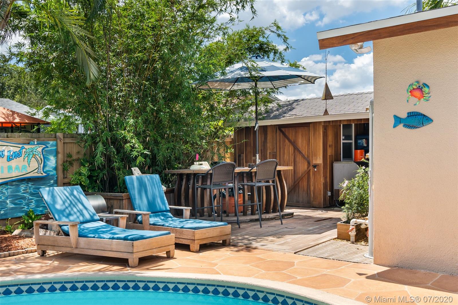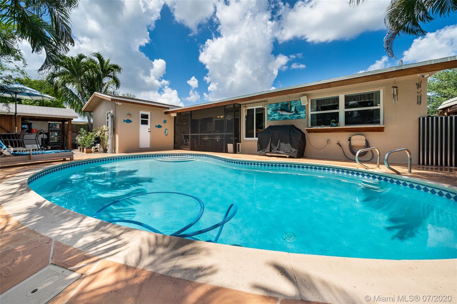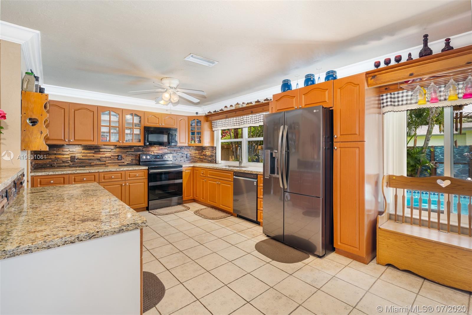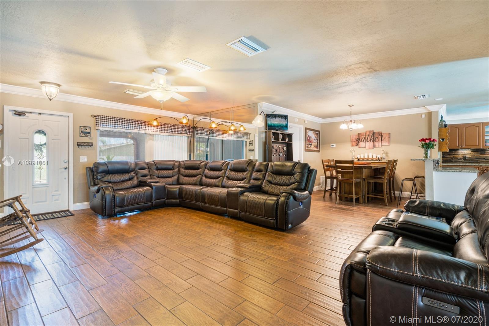 Pride of ownership in this well-equipped 3/2 pool home! High quality upgrades include renovated granite kitchen w/ black stainless steel appliances, IMPACT WINDOWS & doors, 2009 roof, new A/C ducts, crown moldings & baseboards, indoor laundry room w/ newer water heater, 2 car garage w/ new impact resistant garage door & quiet opener, cabana master bathroom w/ multi-jet shower. Very expensive & long lasting, rich IPE teak wood in fascia, front & back decks, trellis, covered shed & columns. Back yard is a TROPICAL OASIS featuring pool with Eurotile patio & multi-colored lighting, storage shed, separate area for dogs. Freshly painted exterior. No HOA or flood insurance required, flood zone X – Furniture for sale - Centrally located in Pembroke Pines close to shops, dining, highways, schools.