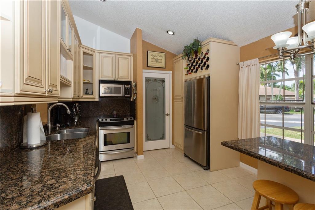 Lovely 3/2 - HUGE Corner Lot & Backyard - almost 1/3 acre premium lot (11,721) Aggressively Priced. Neutral 18" tile thru-out, laminate in 2 Br's. Updated Kitchen w/Granite counters/back splash, 42" Antique White cabinetry, Newer S/S Appliances & W/D, Built-in Wine Rack, built-in matching granite tabletop at breakfast area. Updated guest bathroom/vanity, master bath has newer frameless glass shower. Vaulted ceilings in Living area & Master Br. A/C replaced in approx 2015 - Air handler in 2019. Split bedrooms. Huge Screened/covered vaulted ceiling back porch (10 x 32). Freshly painted Inside/Outside. SPA is negotiable, but AS-IS if buyer wants it. New Hip Roof post Hurricane Wilma. Great Schools-Low HOA fees. Priced right and firm! VA OK. No FHA unless buyer has extra down payment.
