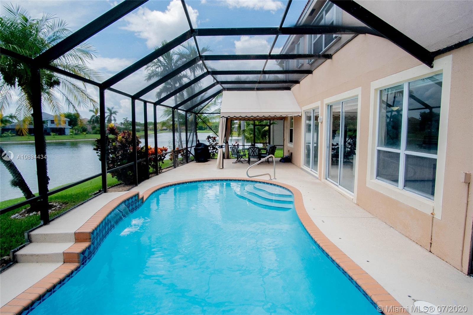 “Location ! Location ! Stunning 5 bedroom 2.5 bath Waterfront Pool home in Cul de Sac. Oversized pie shaped lot. Very spacious home, light and bright. Screened Saltwater Swimming Pool with unbelievable panoramic lake views that feel like they surround the home. Swimming pool has been completely resurfaced within this year ,custom pool safety fence included. 1 bedroom downstairs 4 bedrooms upstairs. Roof is 3 yrs old. Hurricane Shutters. Low HOA community. Great neighbors! Walk or bike to 3 A rated schools. Close to South County Park. Areas for Baseball, Volleyball, Basketball, Tennis and 27 hole golf. Nature center, water park and walking areas.”