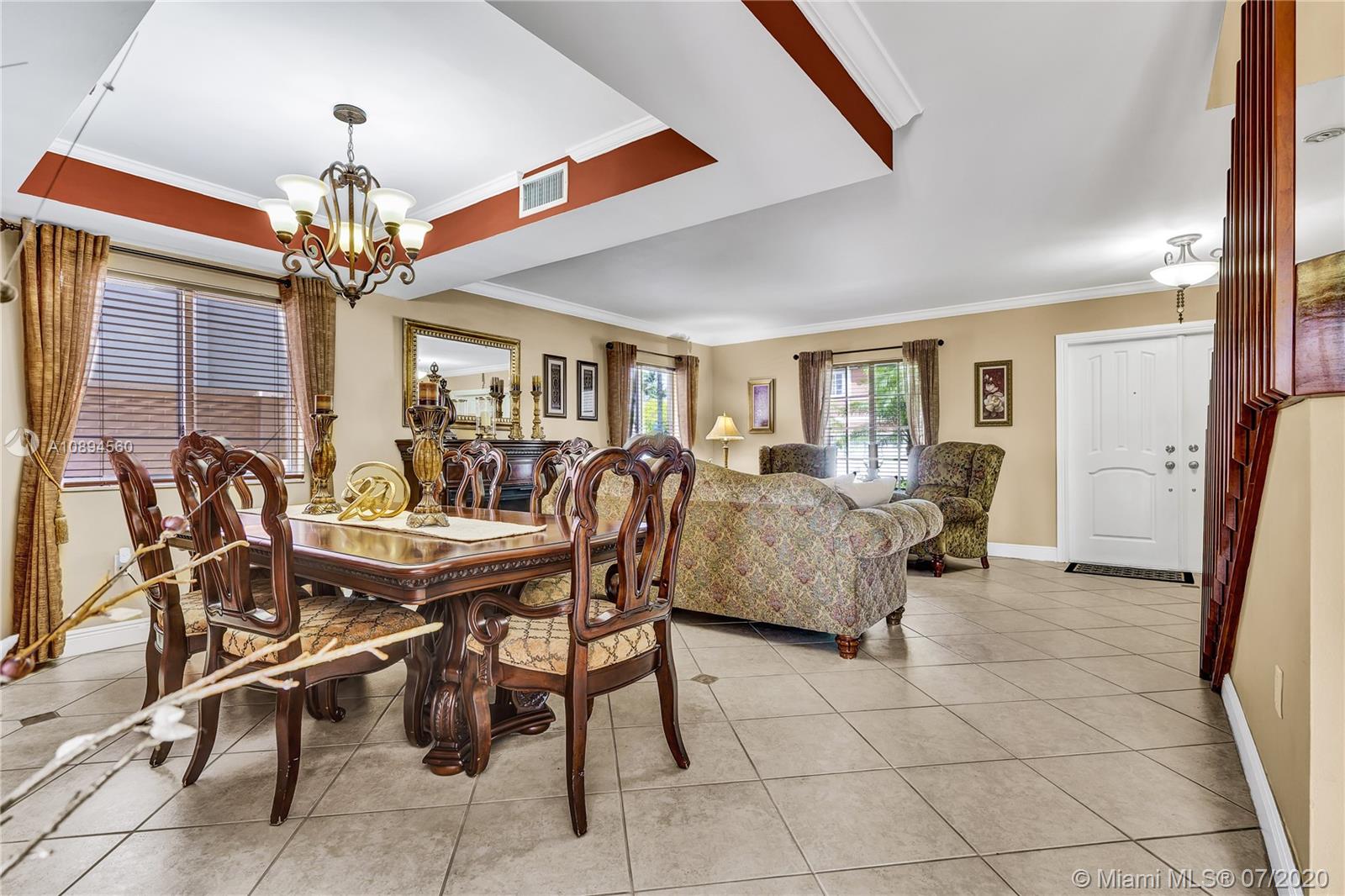 Impeccable two story home in the family friendly gated community of Doral Gardens. This unique home design features 5 bedrooms 3 baths. Spacious floor plan with many updates throughout, including kitchen with granite counter tops and new SS appliances, remodeled bathrooms, 2 car garage with Plenty of Cabinet storage space. Over sized master bedroom, dual sinks, beautiful roman tub with whirl pool jets and separate shower, California walk-in closets. Lake View, and Beautiful pool. Great location near A rated schools, major malls, parks and highways. HOA includes Basic cable, Fast internet/wifi , security system, cameras, Gated Community, common areas. Easy to show!