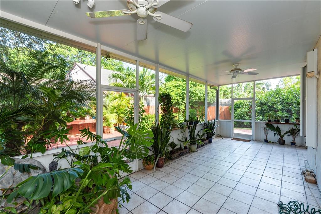 Remodeled home throughout and the perfect amount of space to enjoy and relax. One of the biggest lots in Community. Huge Screened in porch with overhang overlooking yard, garden, and custom deck. Updated kitchen with wood cabinets and granite tops. All Bathrooms remodeled. Just painted. Two car garage was professionally converted to 4th room for playroom, gym, home office. Accordion Shutters. Long driveway. Washer/dryer upstairs. Tons of light. Community dues include cable, gym, playground, and security guard patrol. Additional guest parking and pool are a two second walk. No neighbors to one side of you. This home is special and has great charm.