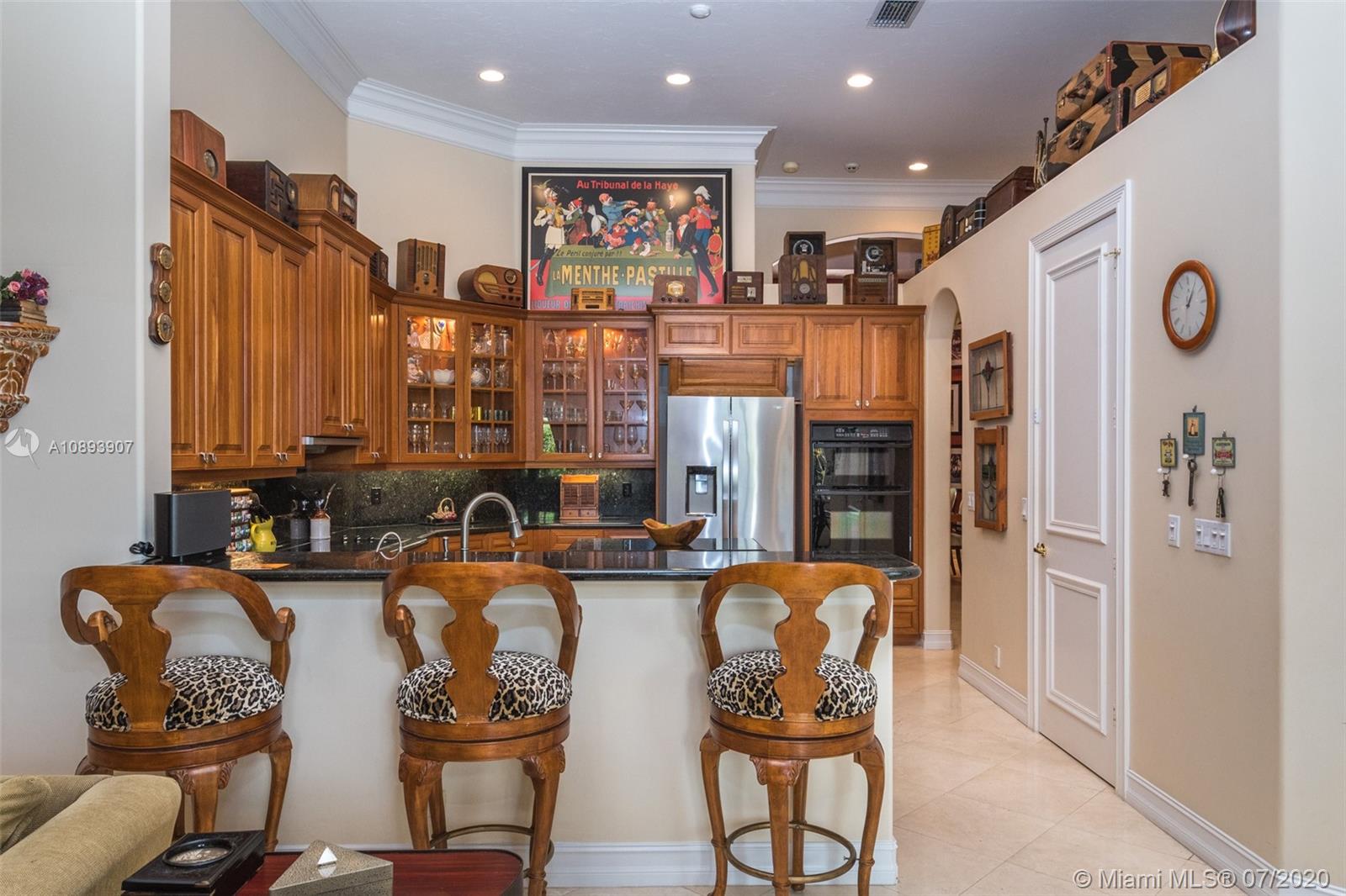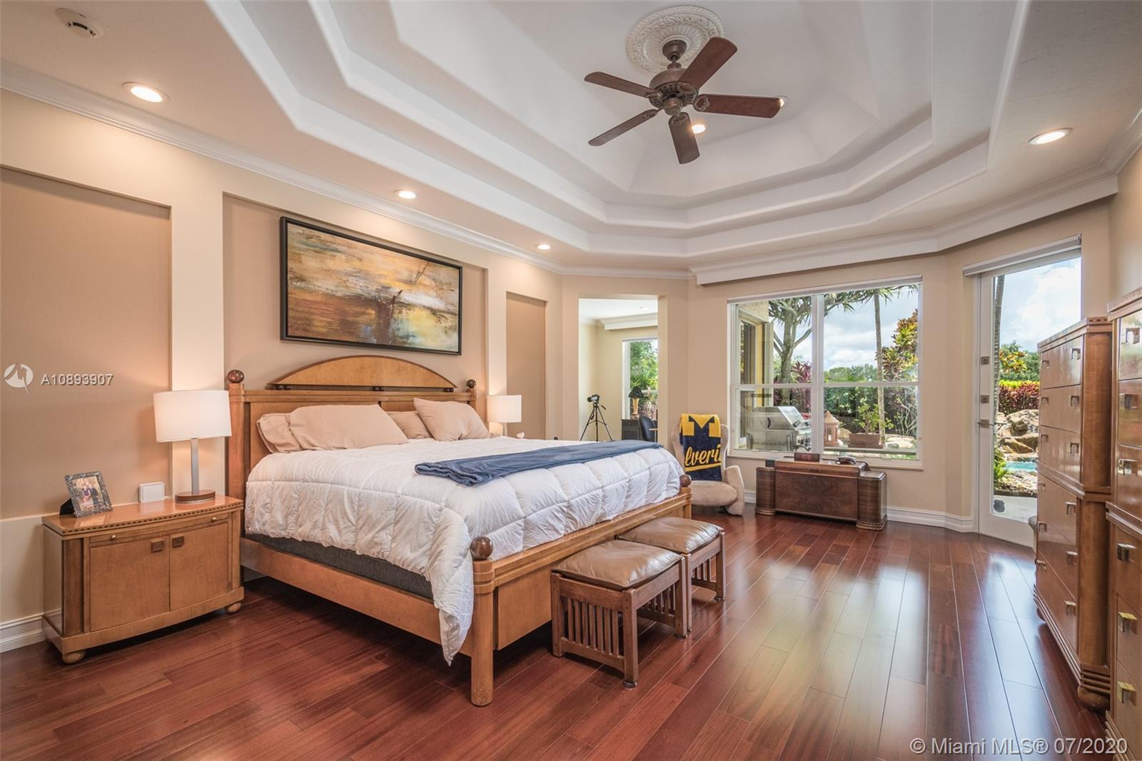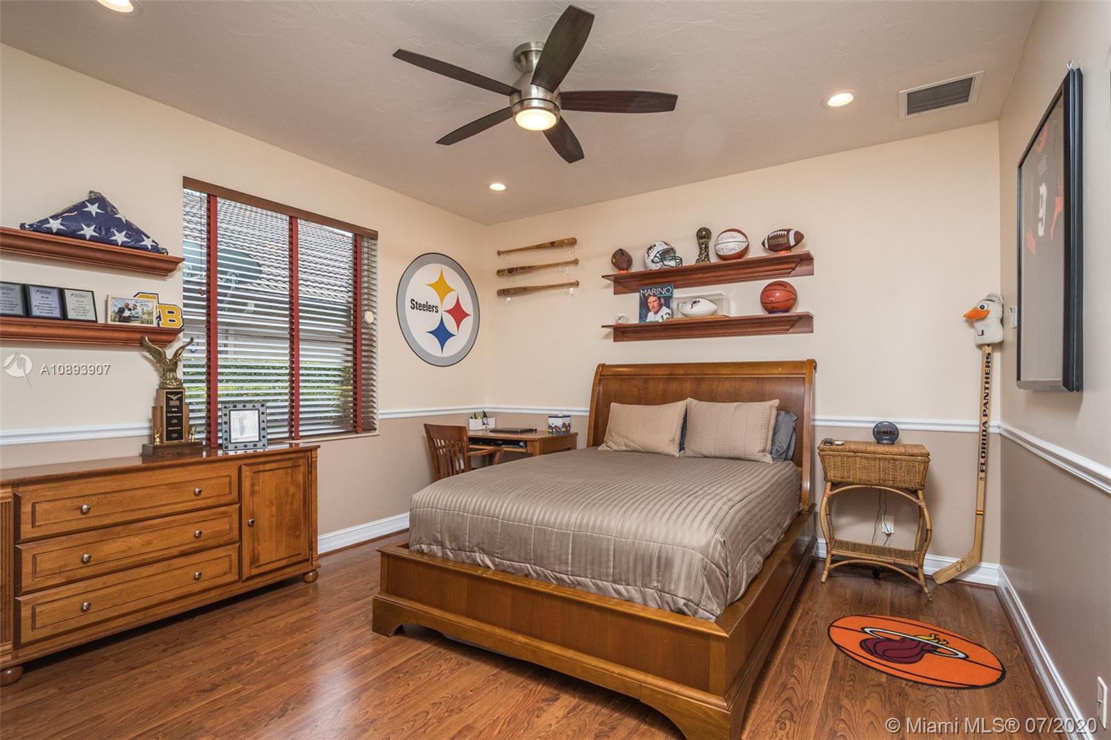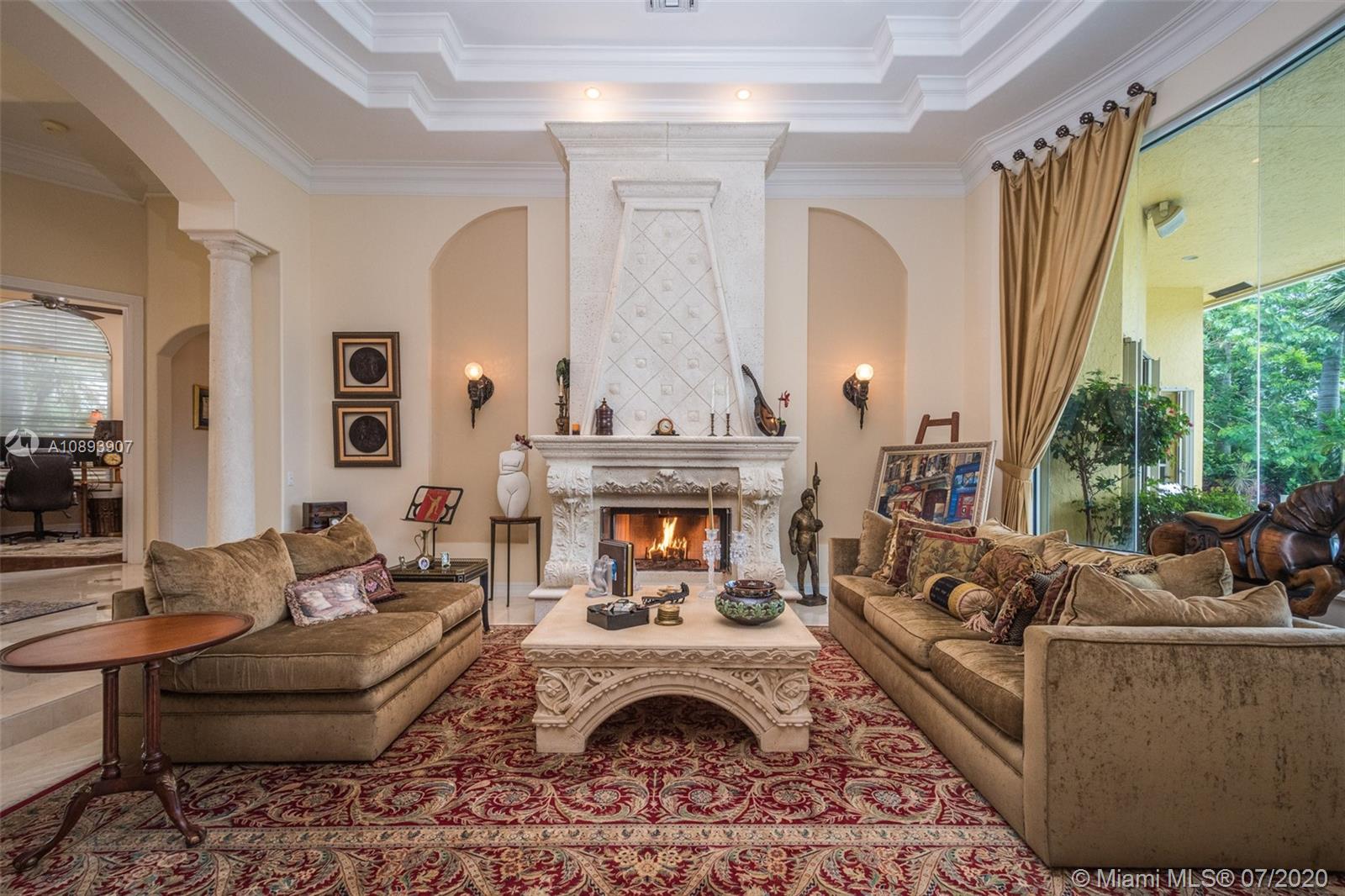This elegant custom home sits majestically in the gated community of Provence at Weston Hills Country club. Spacious, distinctive Issa designed home. Backyard oasis with waterfall pool and travertine patio, fully fenced and privacy landscaped. Marble and wood flooring flow throughout. Decorative Fireplace wood burning in a formal living room. Gourmet kitchen with Miele Stainless steel appliances, double oven, center island, granite countertops with large walk-in pantry. Owners suite with wood flooring, tray ceilings, and private den for relaxation or second office. 4.5 renovated baths. Enjoy four additional bedrooms plus a playroom/billiard room with a wet bar and an office.