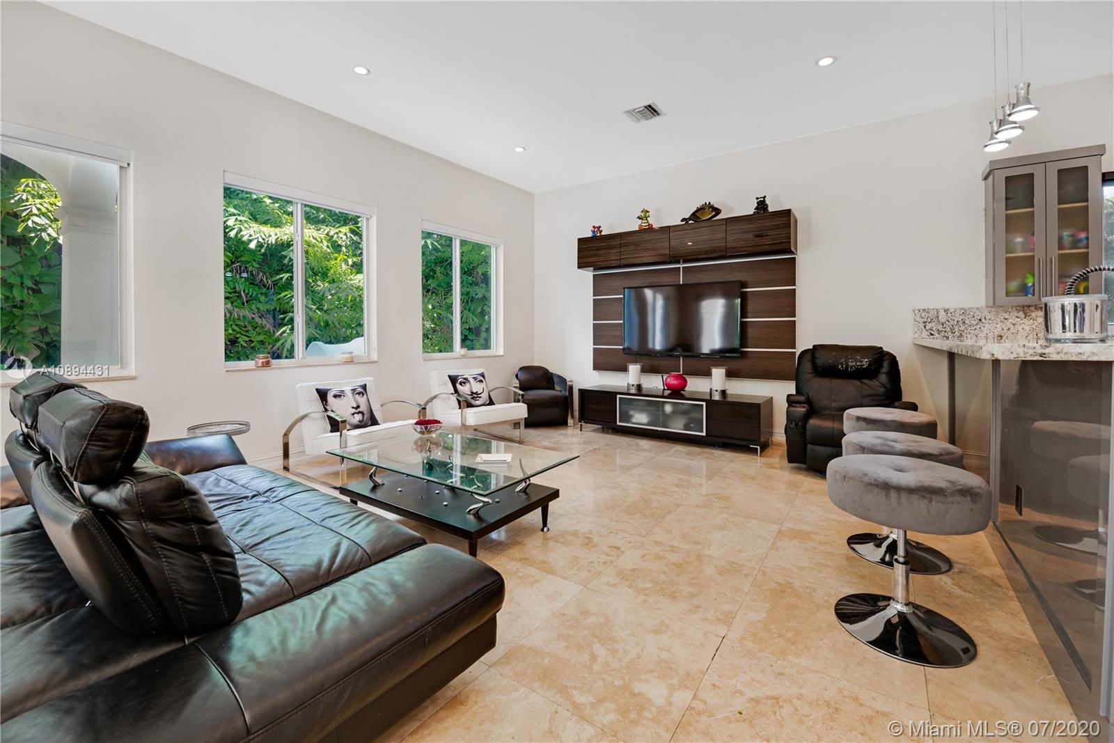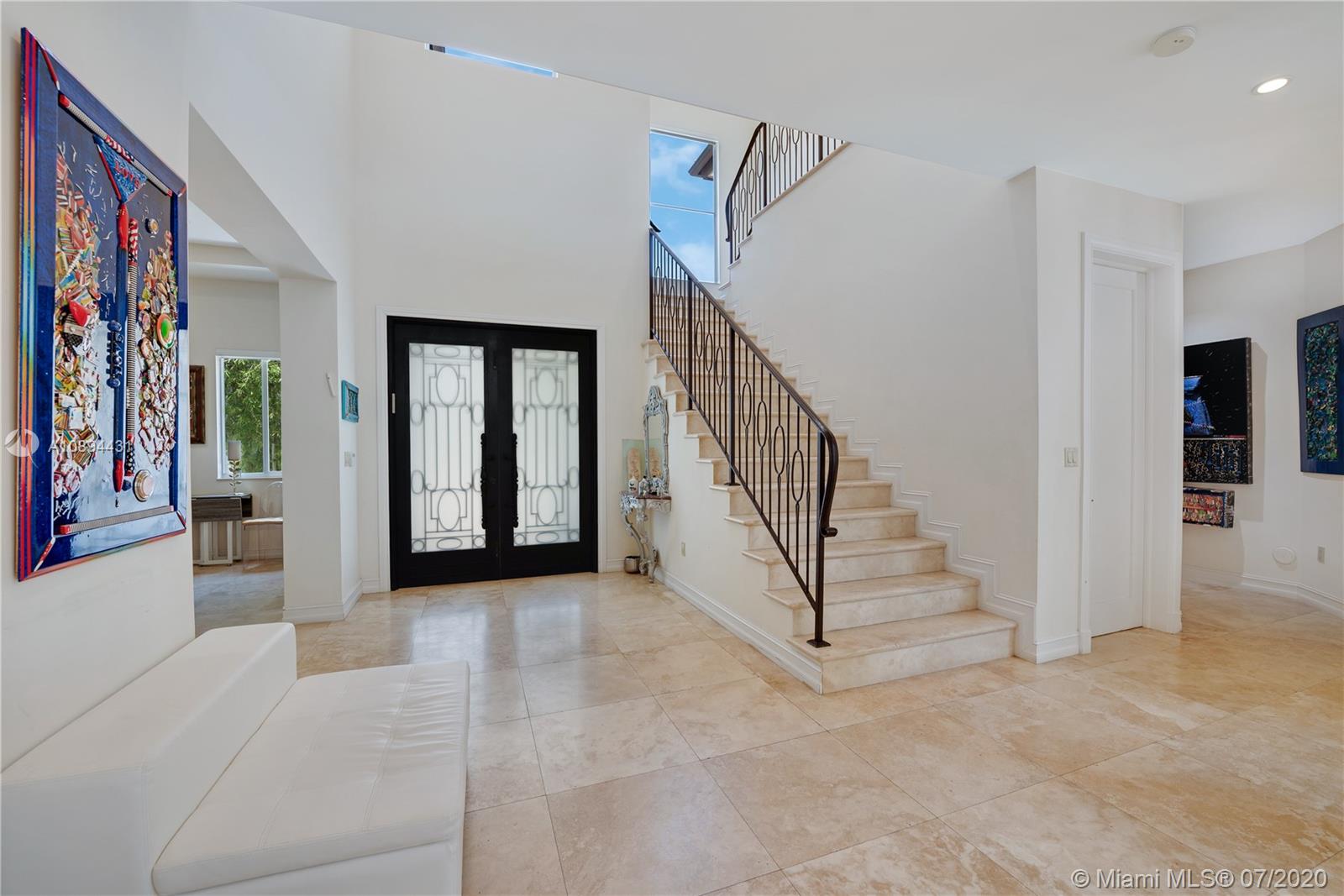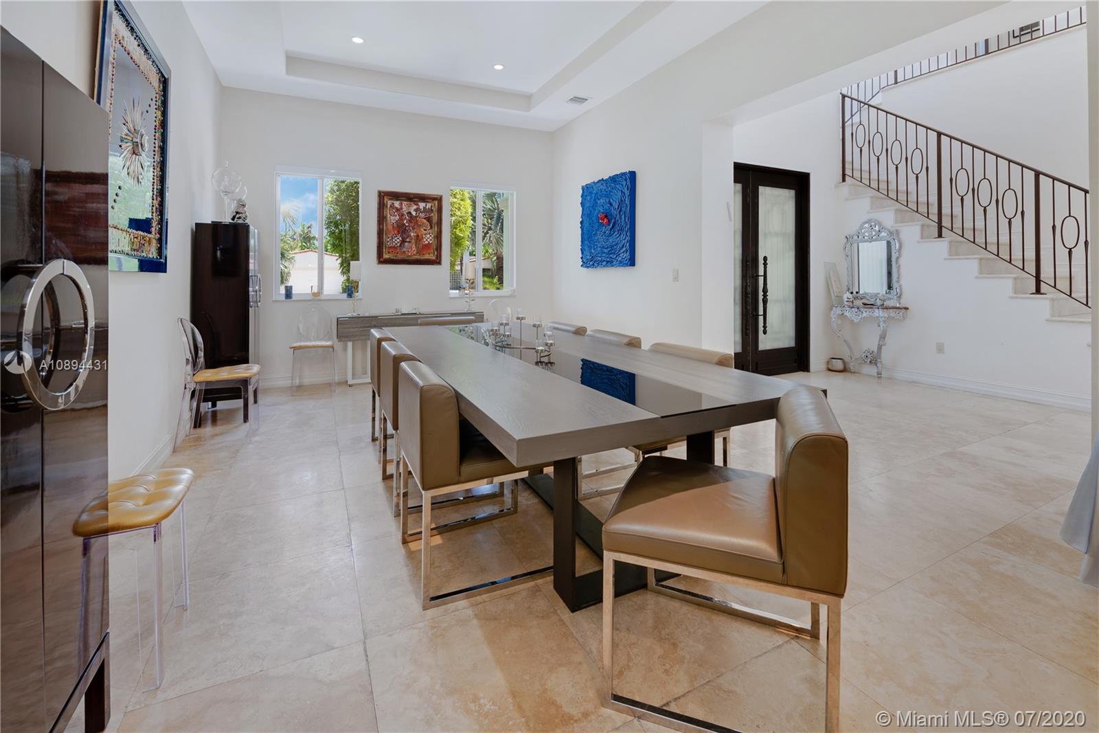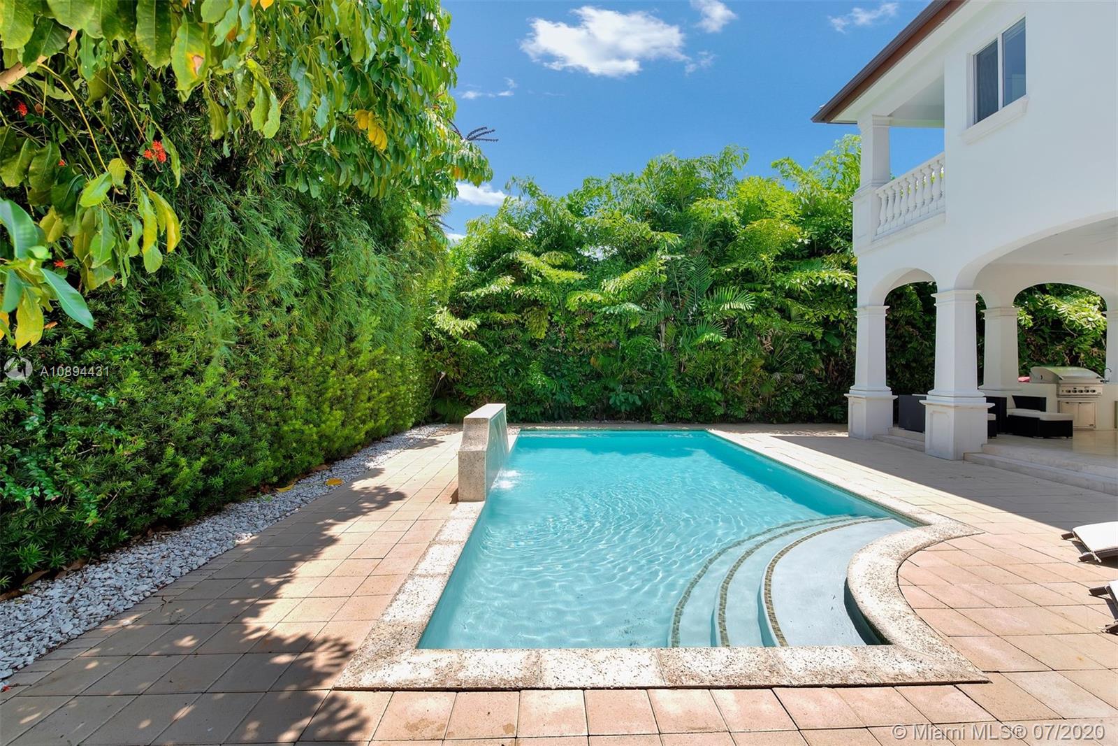 Stunning Modern Mediterranean residence perfectly located on prestigious Bay Harbor Islands. Please click on 3D tour to see for yourself. A Magnificent footprint w 4bd up/2 down,each w ensuite bath. Abundance of natural light thruout all living & entertaining spaces. New eat-in kitchen w adjacent family rm (Bosch range & ovens/Thermador refrigr/freezer) large pantry. Master suite w terrace, 2 enormous walk-in closets/luxurious bath.Expansive covered patio w summer kitchen & wood burning pizza oven made by world renowned Artist,heated pool w waterfall & private patio w mature trees.Elegant formal dining,dramatic living rm w double volume ceilings, 2car gar+storage, all impact window/doors, sep laundry rm. A+rated school, houses of worship, beaches, Bal Harbour Shops right down the street!
