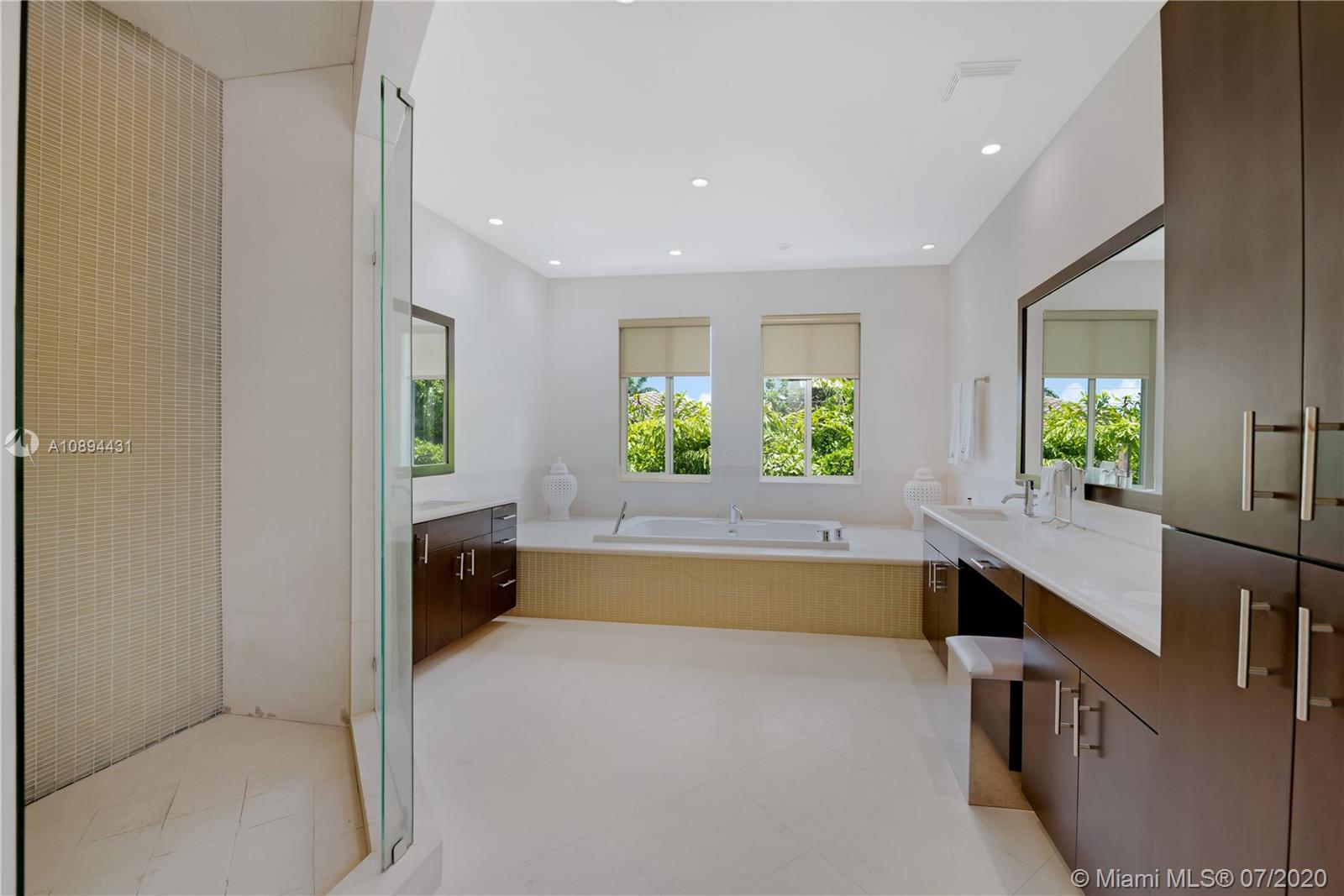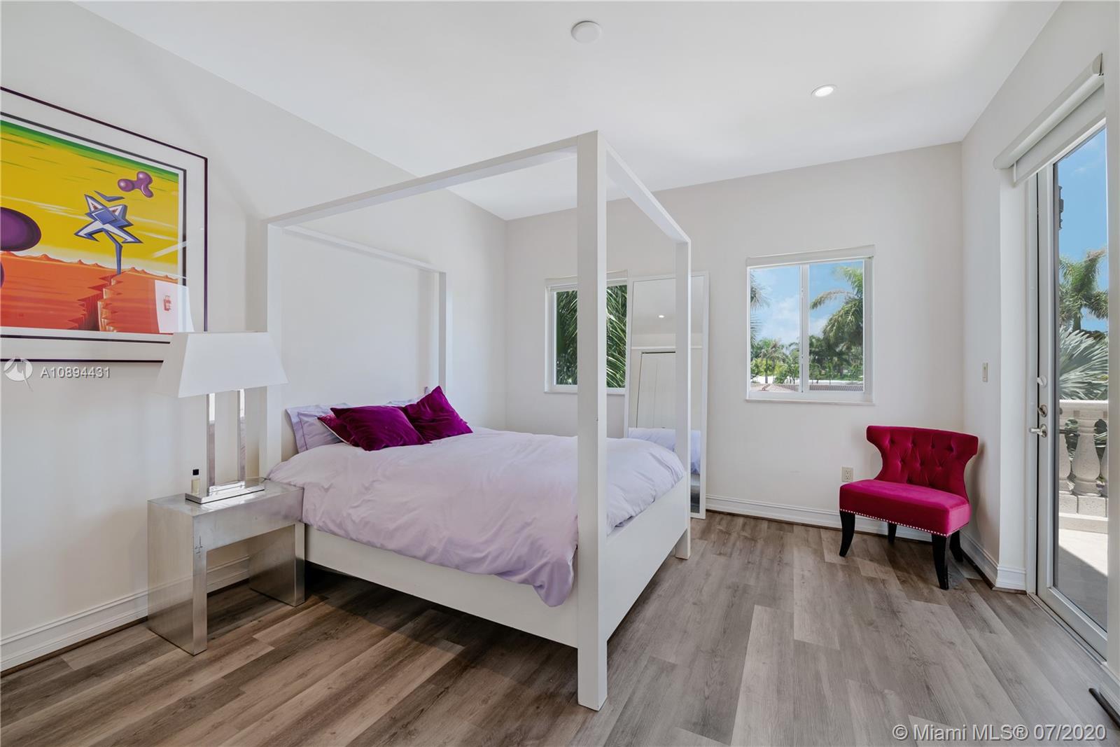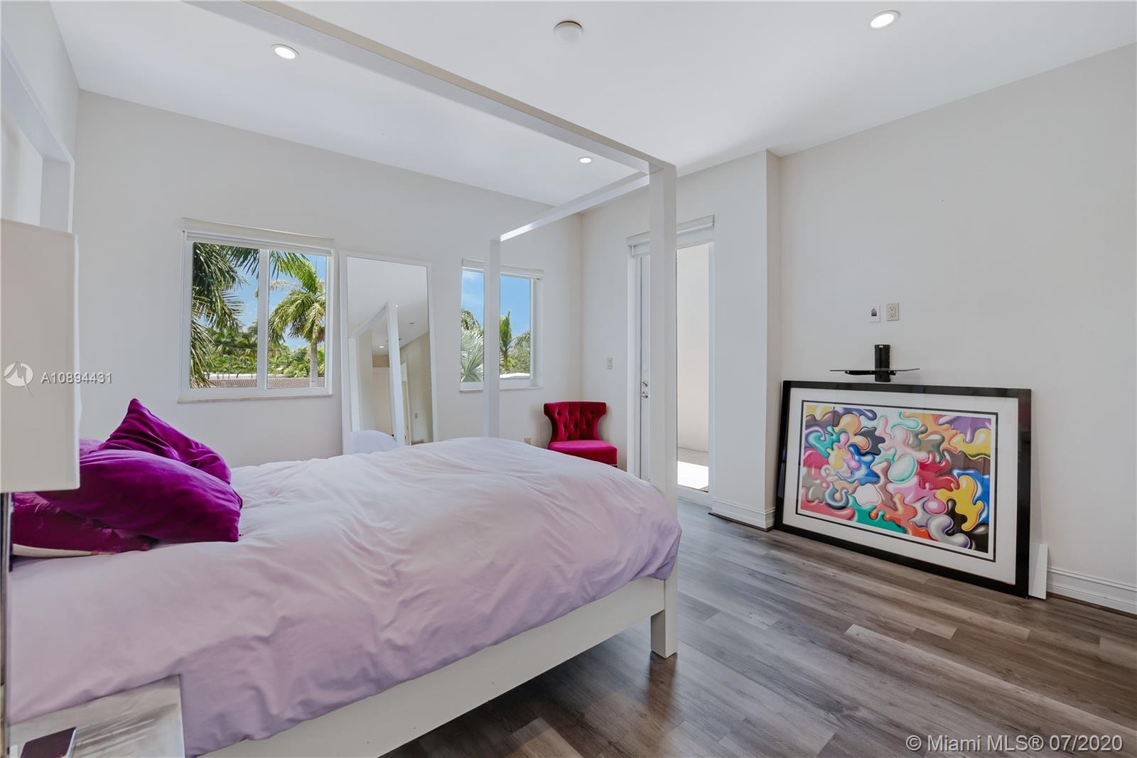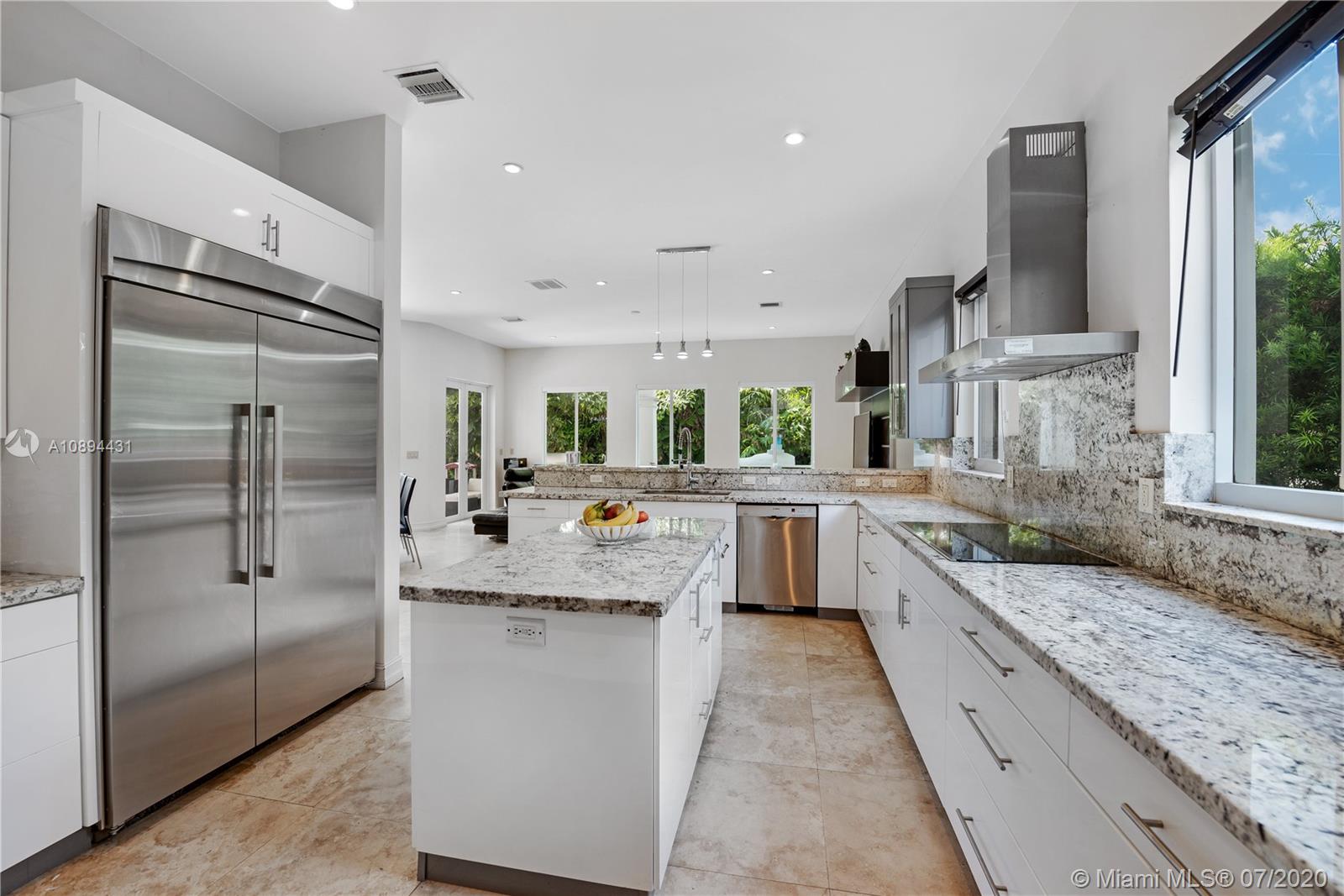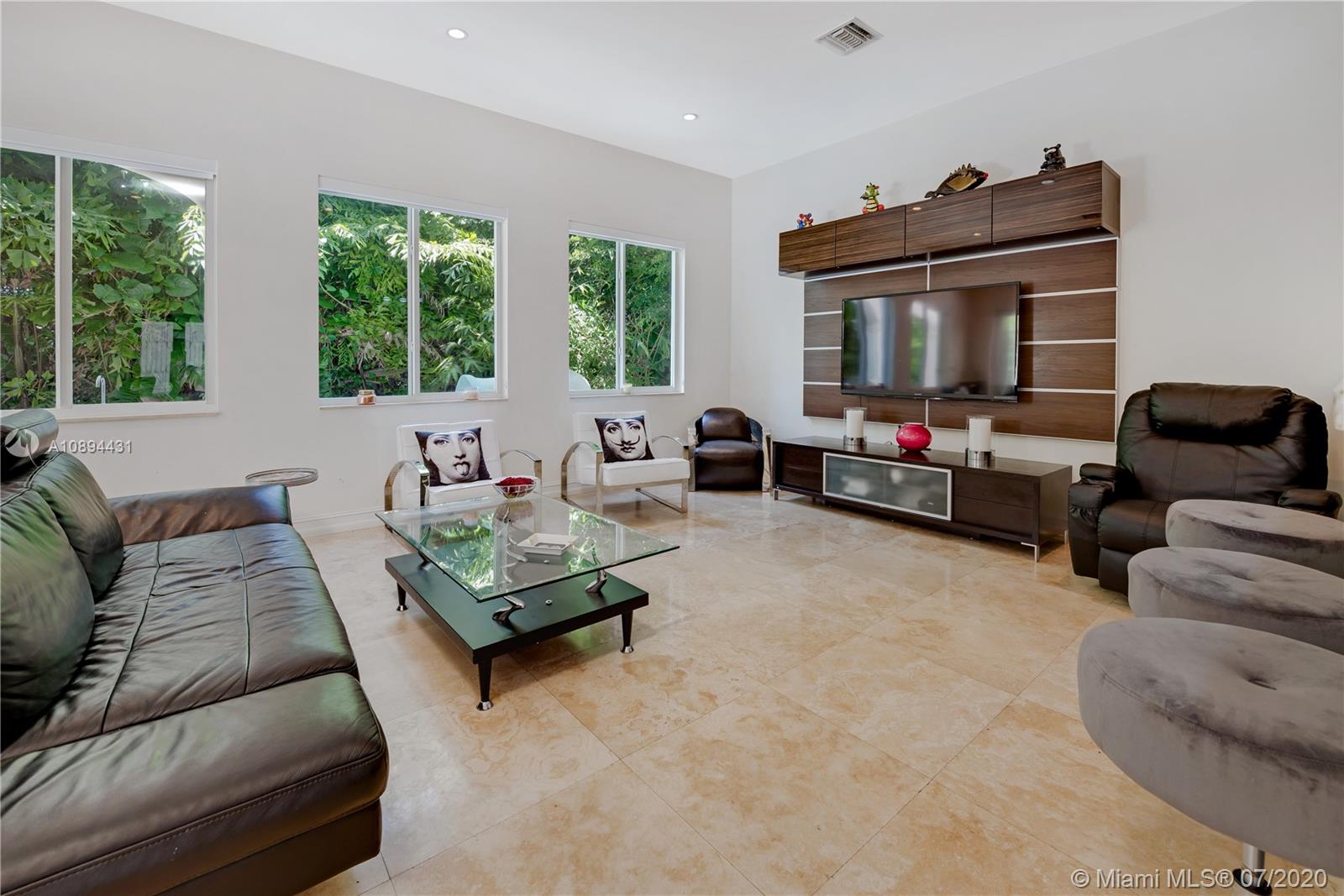 Stunning Modern Mediterranean residence perfectly located on prestigious Bay Harbor Islands. Please click on 3D tour to see for yourself. A Magnificent footprint w 4bd up/2 down,each w ensuite bath. Abundance of natural light thruout all living & entertaining spaces. New eat-in kitchen w adjacent family rm (Bosch range & ovens/Thermador refrigr/freezer) large pantry. Master suite w terrace, 2 enormous walk-in closets/luxurious bath.Expansive covered patio w summer kitchen & wood burning pizza oven made by world renowned Artist,heated pool w waterfall & private patio w mature trees.Elegant formal dining,dramatic living rm w double volume ceilings, 2car gar+storage, all impact window/doors, sep laundry rm. A+rated school, houses of worship, beaches, Bal Harbour Shops right down the street!