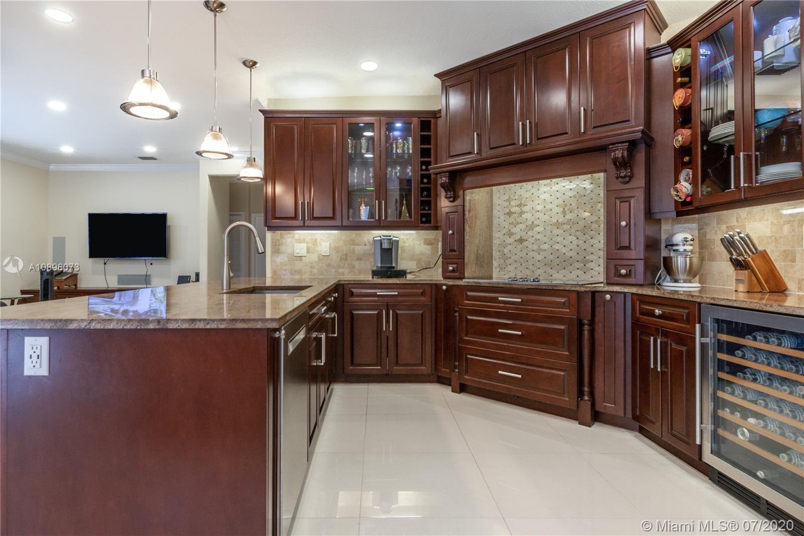 Stunning Estate Home in Prestigious Nautica Community! Look no further! This is truly a dream come true! This home features so many upgrades to include: Volume Ceilings, Porcelain Tiles, Wood flooring, State of the Art Gourmet kitchen with SS appliances , Granite Counter top, Double Oven, Wine cooler, lots of storage, Custom Cabinetry, Huge Pantry and a “secret bar”. Huge Master Suite with a separate sitting area, private Balcony overlooking the Custom made Pavilion. His/ Her Walking Closet with Barn sliding doors. Master bathroom completely upgraded with separate shower and Tub. 2nd & 3rd bedroom are “Jack & Jill”. 4th bedroom can be used for mother in law suite or teenager room with its own full bath. Accordion Hurricane Shutters and Translucent blinds throughout.