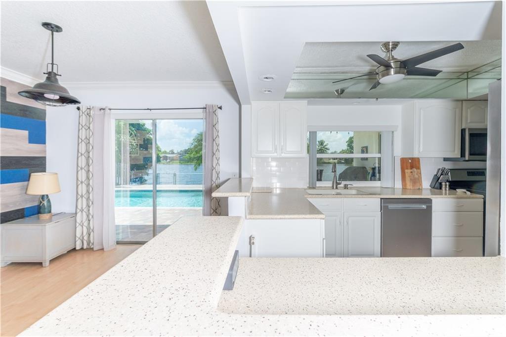 Welcome to your new home. From the moment you walk through the front door, you immediately catch a glimpse of the bright blue pool and gorgeous lake views. This split floor plan home is light and bright, with laminate flooring throughout. Kitchen features corian countertops with plenty of counter space, SS appliances, and a GAS range for the chefs out there. Both bathrooms nicely updated and AC only 2 years old. Circular driveway offers lots of parking for your friends and family who come to attend the holiday gatherings and/or pool parties. Large one car garage with washer/dryer. The yard is fully fenced on 60 feet of lakefront allowing docks and all non-gas powered boats. Close to Sawgrass Mall, BB&T Center, and major highways. NO HOA!!! This will not last!!!