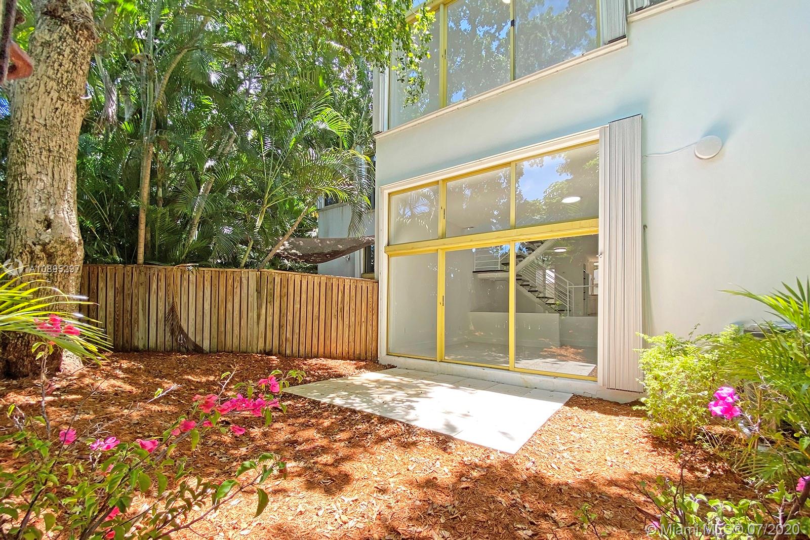 Stunning, open-concept contemporary townhouse with an unbeatable location in center Coconut Grove! Ideally situated only a few blocks away from the village shops & restaurants, bayside parks, and marinas! Light-filled living spaces w/ soaring 24’ ceilings, walls of glass, gorgeous new bathrooms & new polished concrete floors. Exceptional outdoor areas w/ private backyard and 400 sq. ft. roof deck. 2-car garage. Rare opportunity to live at Apogee, a 10-unit townhouse community set beneath a lush tree canopy.