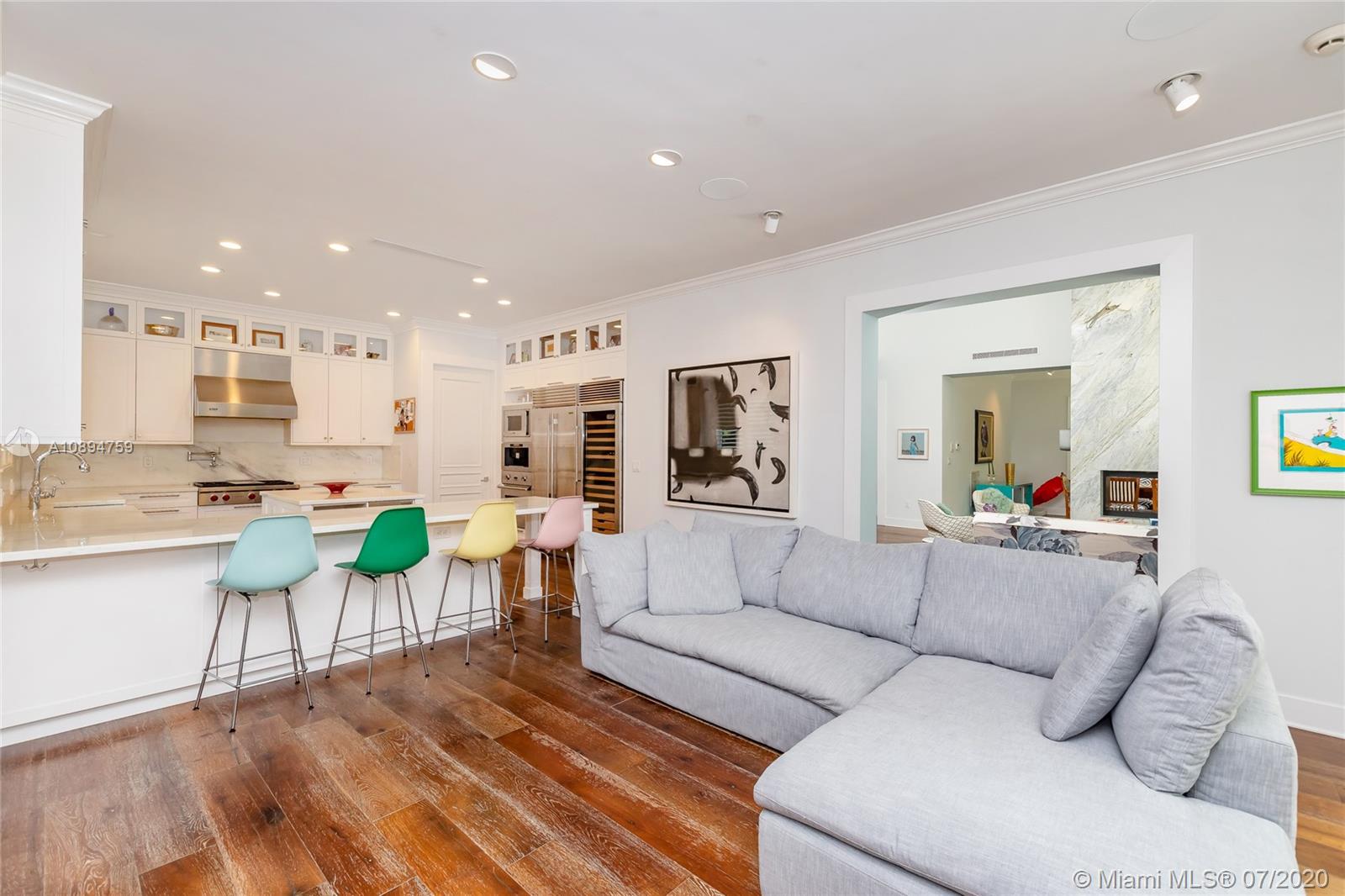 Contemporary, island-style home is modern and timeless at once. A welcoming space with ultra high ceilings and rich wooden floors, the house features large front and back porches, saltwater pool, jacuzzi, six-car carport, and one of the best front yards in Key BIscayne: room for soccer AND trampoline!  Its white marble family style kitchen with center island, generous breakfast bar and best-in-class appliances opens into a fun, relaxed family room. Floor-to-ceiling Carrara Blue fireplace is the centerpiece to a large living room, which flows into the dining room. Please see attachment and download the property disclosure. Easy to show!