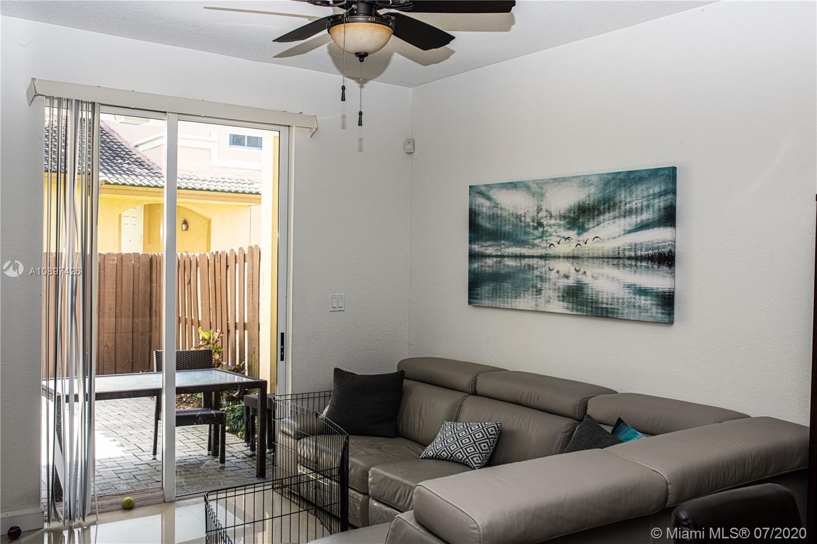 Awesome Townhome 3/3 plus den. Porcelain floor and wood floor. One-bedroom is downstair with access to a cozy paved and fenced patio. Oversized master bedroom with two closets and a balcony. Open kitchen with wood cabinets and SS appliances. High ceilings with room for a fourth bedroom. Very well kept gated community with lush landscaping, park, and clubhouse with pool, gym, and social room. Easy access to Florida Turnpike and A schools. NO CDD
