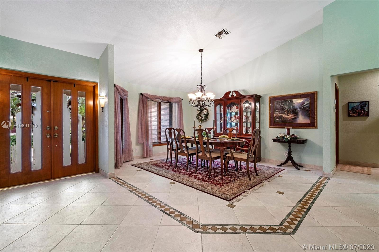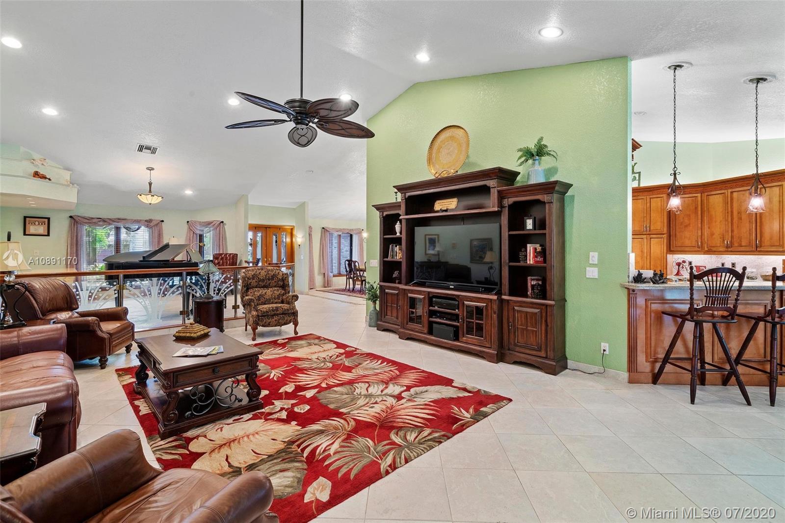 Charming and spacious one-story home in Maplewood Isle, a 24/7 manned gated community of only 105 custom-built homes, tree-lined streets and winner of 2016 Mayor's Rose Award for most beautiful neighborhood. 4 bedrooms/2.5 bathrooms plus a large office or entertainment room that overlooks the pool/spa and the recently updated patio area. Gorgeous landscaping and details around the home. Kitchen with island, granite counter tops, Bosch appliances, double oven self-cleaning, wine cooler, hot water dispenser, pantry, and abundant cabinets. Living room features a marble wet bar. Master bedroom with sitting area and whirlpool bath tub in master bathroom. Great waterview backyard includes Gazebo-style outdoor kitchen. Accordion shutters. Central vacuum system. Washer and Dryer do not convey.
