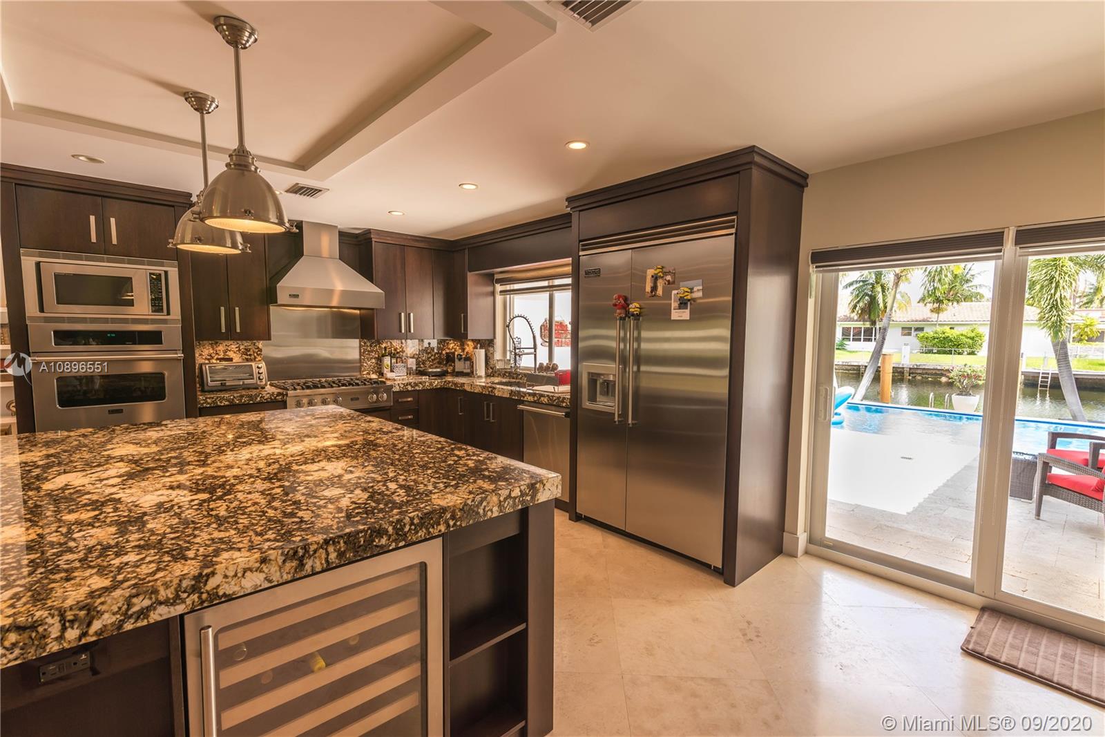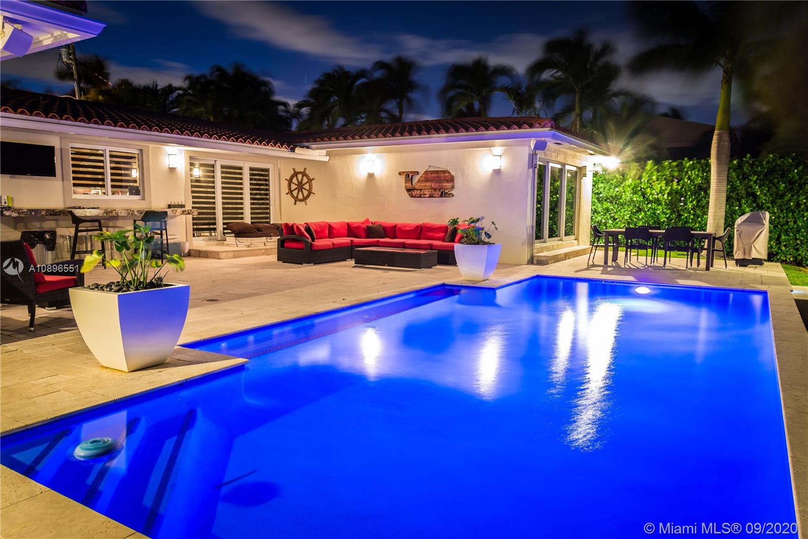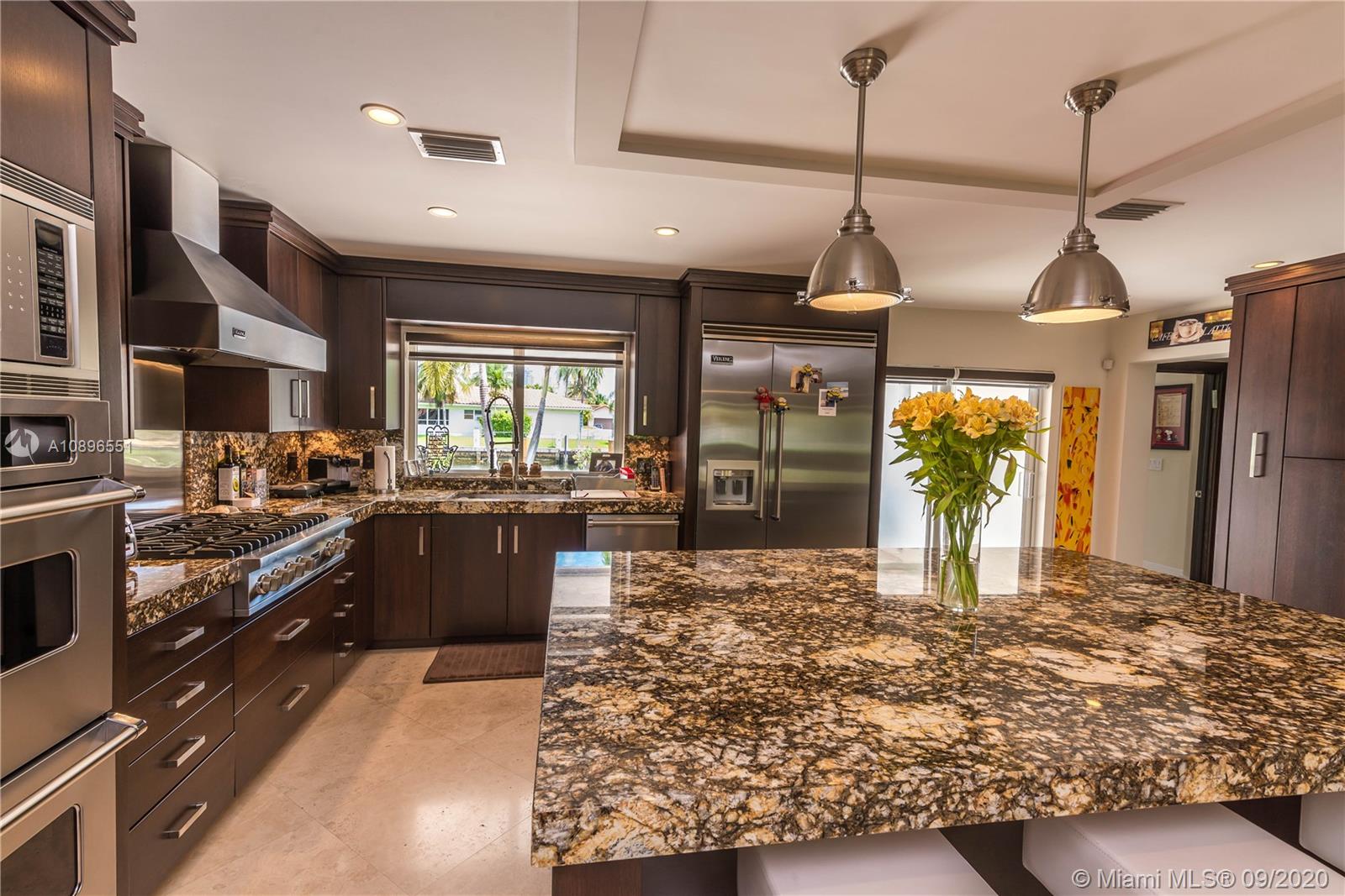 State of the art one story home located in the prestigious Eastern Shores community. No details have been spared! Completely remodeled 3175 sq ft 4 bed 3 bath 80' on the water (ocean access), 63' boat slip, 1 car garage, chef's kitchen w SS Viking appliances, imported Brazilian marble, oversized island, custom whit oak cabinetry, wine chiller, onyx countertops, marble/glass/ porcelain floors, built in California closets, windows and doors impact glass throughout, barrel tile roof, heated pool, 2 a/c's, Sonos sound system throughout, 8' solid wood cherry doors, and much much more. A MUST SEE! Can be purchased furnished.....