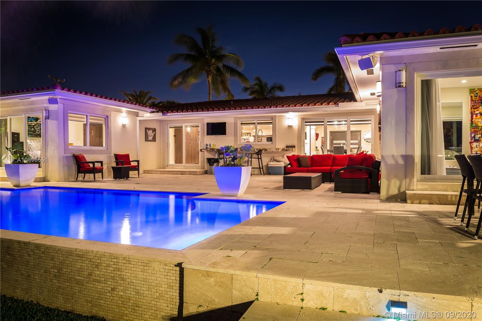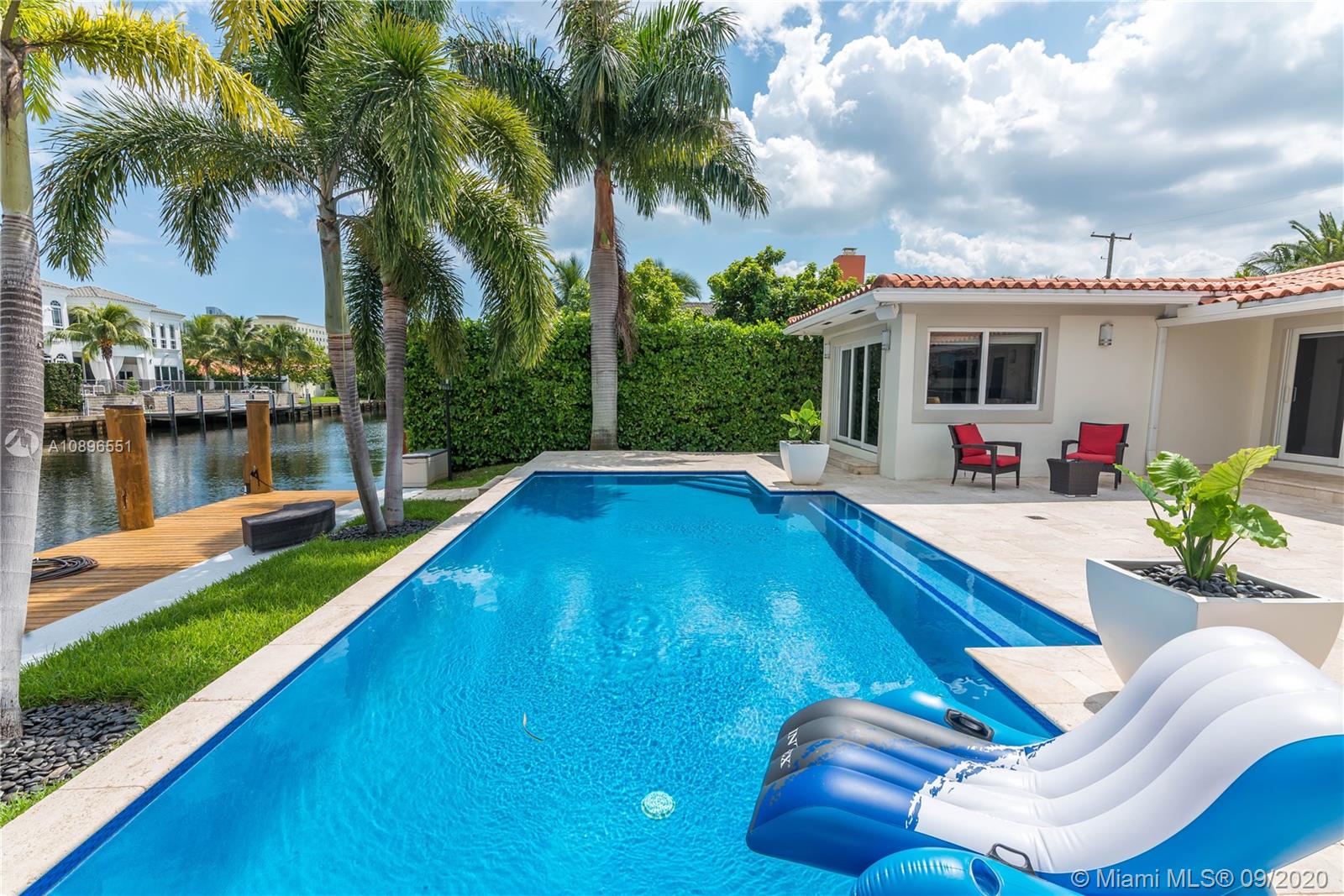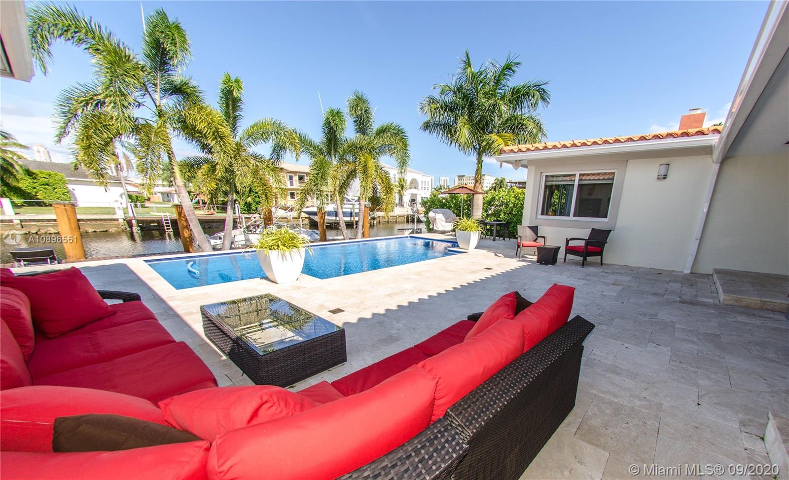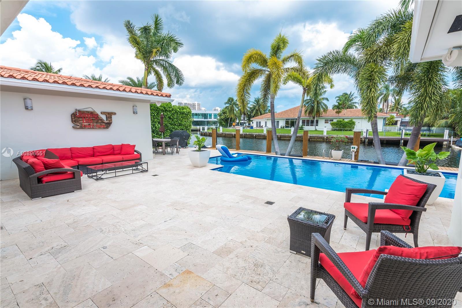 State of the art one story home located in the prestigious Eastern Shores community. No details have been spared! Completely remodeled 3175 sq ft 4 bed 3 bath 80' on the water (ocean access), 63' boat slip, 1 car garage, chef's kitchen w SS Viking appliances, imported Brazilian marble, oversized island, custom whit oak cabinetry, wine chiller, onyx countertops, marble/glass/ porcelain floors, built in California closets, windows and doors impact glass throughout, barrel tile roof, heated pool, 2 a/c's, Sonos sound system throughout, 8' solid wood cherry doors, and much much more. A MUST SEE! Can be purchased furnished.....