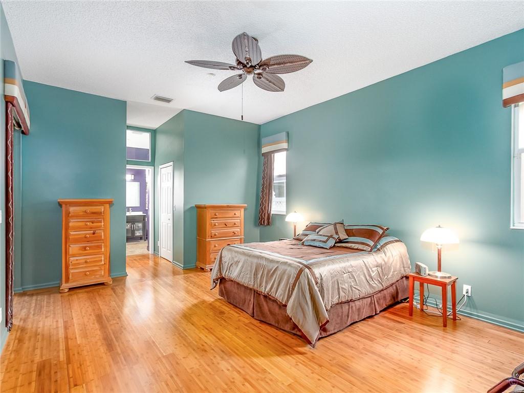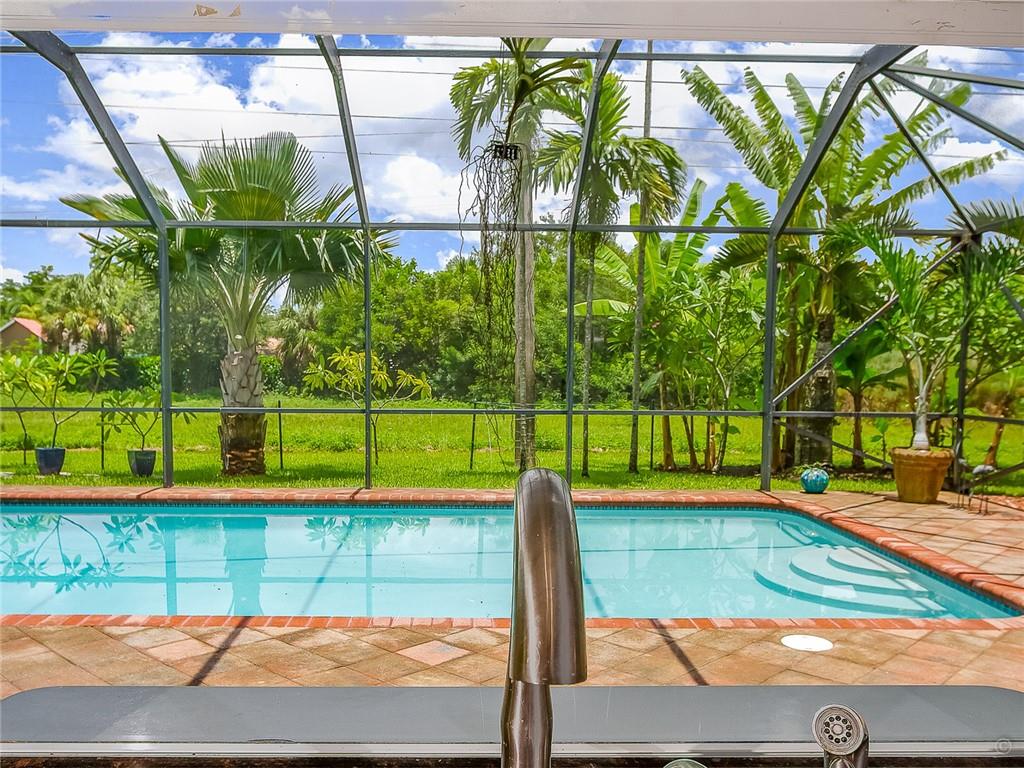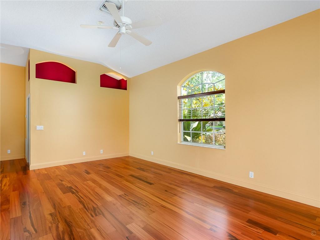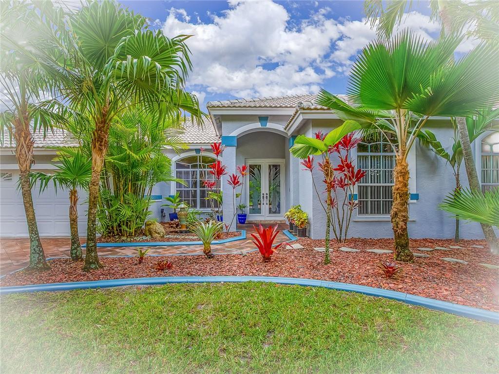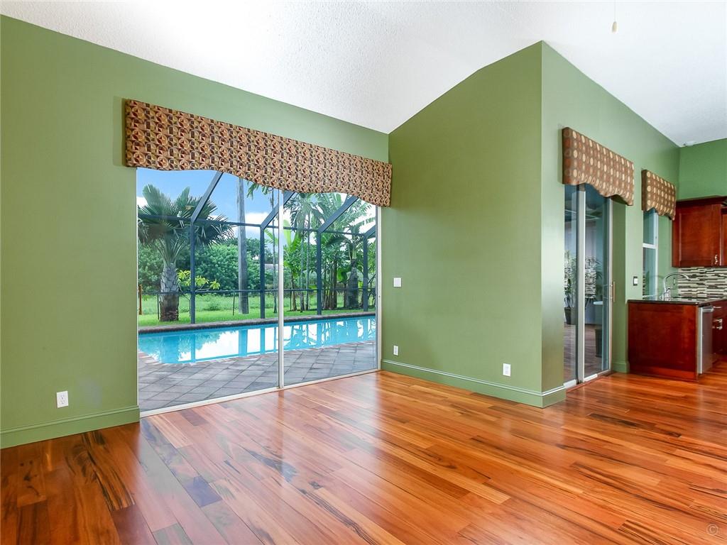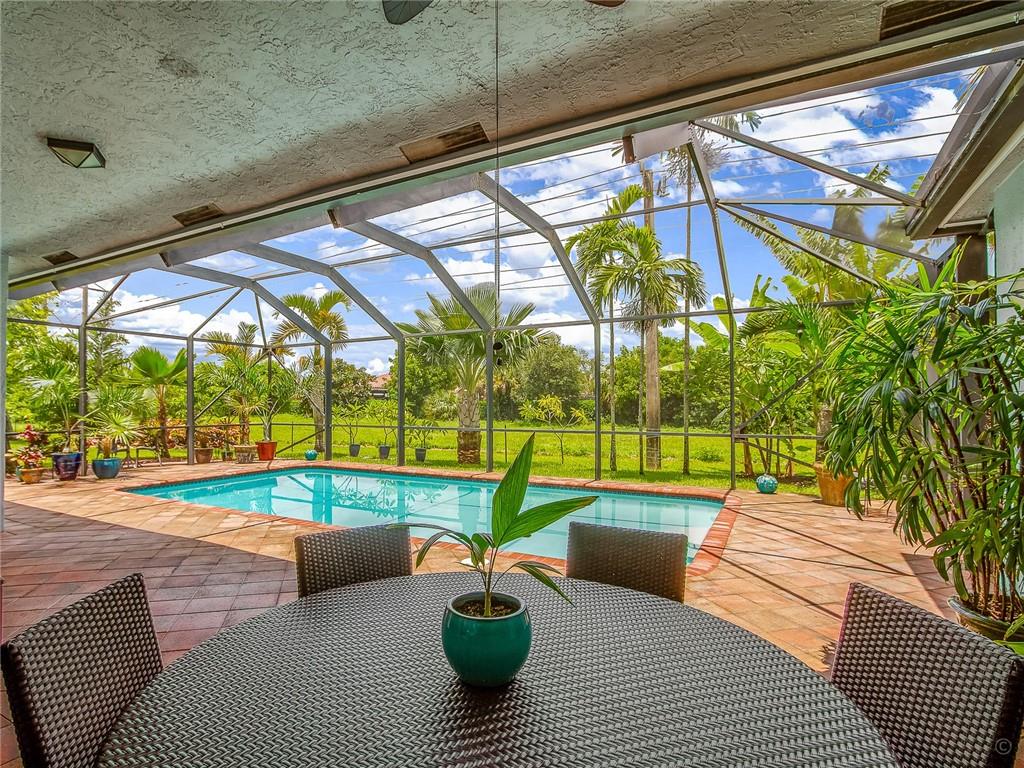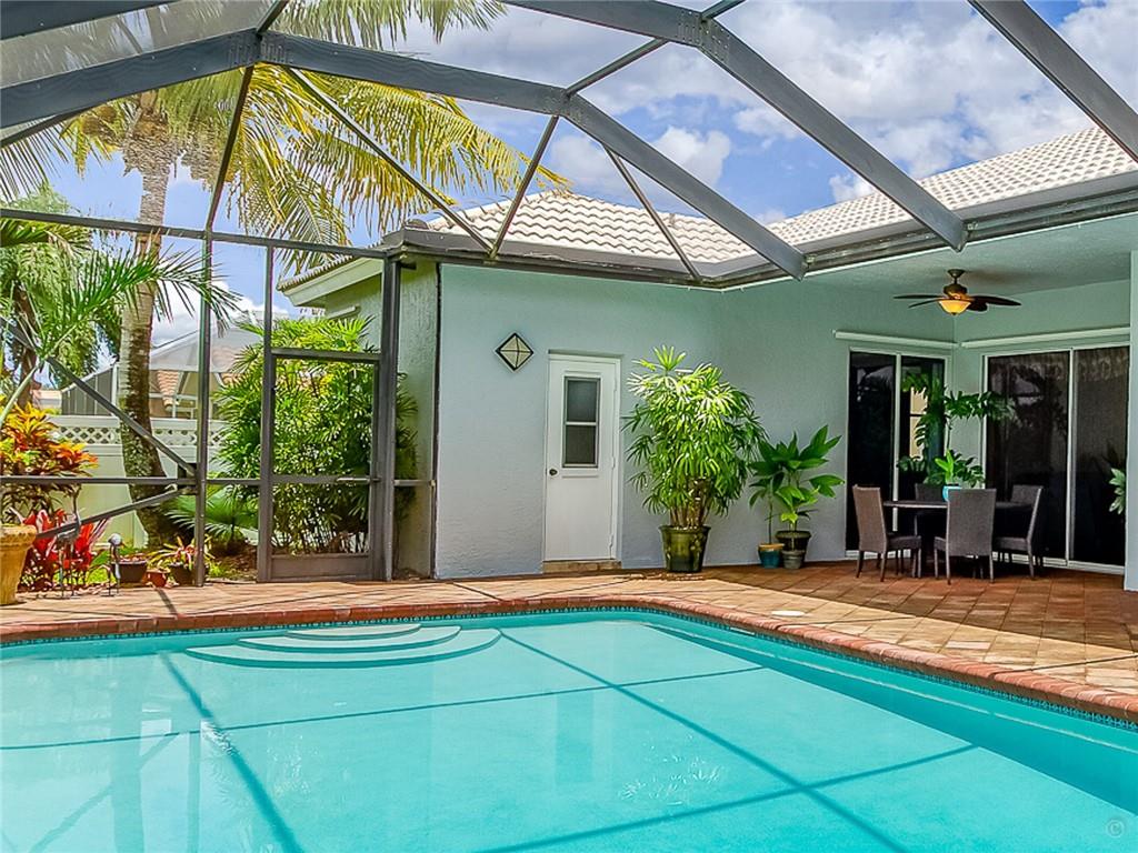 WATCH THE TOUR. Pride of Ownership, Well-Maintained, just One Owner. Situated on a private 1/3-acre lot. Professionally landscaped w/flowering & fruiting trees, rare palms & easy-care plants. The BIG open floorplan has natural light, 11 ft vol. ceilings & recently refinished Brazilian Cherrywood floors. The bedrooms have carbonized bamboo floors + 10 ft ceilings. A remodeled kitchen w/maple cabinetry, granite, glass tiled backsplash & SS appliances, laundry rm, remodeled bathrooms, Master w/his & hers walk-in closets, ensuite w/double sinks, frameless glass shower, roman tub, cabana door to the pool. Screened patio w/heated pool, Carrier AC, LED kitchen lights, security system, dusk-to-dawn lighting, fiber optic internet. Brookside Court is located directly across from Betty Stradling Park