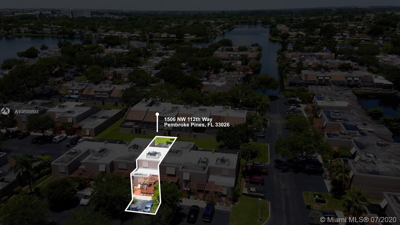 Fantastic 2 bedroom 2 bathroom townhouse in the heart of Pembroke Pines. The residence features master bedroom and master bath upstairs and 1 bedroom and 1 full bath downstairs, high vaulted ceilings, tile floors throughout the living areas, laminate wood floors in the bedrooms, impact windows in downstairs bedroom and upstairs bath, accordion shutters elsewhere, updated vanities in both bathrooms, tankless water heater, a/c is 2 1/2 years new, flat roof is 1.5 years old, shingle roof 4 years old, spacious, tiled and private patio, 2 assigned parking spaces with guest parking spaces nearby. The community features 3 tennis courts, club house, pool, 2 racquetball courts. Community is located 1/2 mile from the Pembroke Lakes Mall with shopping, dining and entertainment.