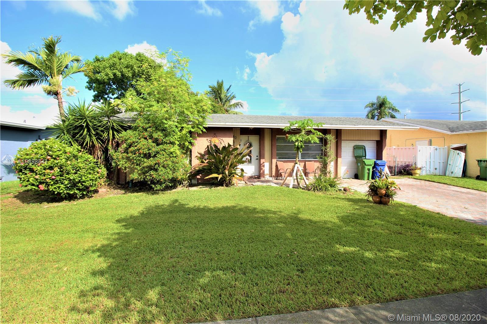 GREAT 2/1 + 1 CAR GARAGE WITH POTENTIAL TO BE A 3/2 (OWNER HAD APPROVED PLANS TO CONVERT THE GARAGE SEVERAL YEARS AGO, SEE LAST PICTURE) REMODELED KITHEN AND BATH DONE ABOUT A YEAR AGO, GRANITE COUNTERS, STAINLESS STEEL APPLIANCES, FAMILY ROOM WAS ADDED IN 2004 WITH PERMITS. TLES IN LIVING AREA AND CARPET IN BEDROOMS, CENTRAL A/C SYSTEM IS 2 YEARS OLD, THE HOUSE HAS GAS SERVICE FROM A LEASED TANK FOR STOVE, WATER HEATER. INVITING BACK YARD WITH OPEN VIEW AND NO NEIGHBORS IN THE BACK, SEVERAL FRUIT TREES (MANGO, AVOCADO & COCONUT) EXCELLENT LOCATION NEAR NEW CITY CENTER OF PEMBROKE PINES AND PEMBROKE LAKES MALL. **SELLING AS-IS W/RIGHT TO INSPECT, CALL TODAY FOR A PERSONAL TOUR!