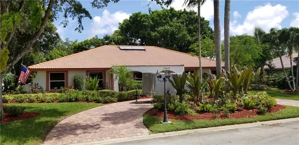 UPDATE Sept 1 - numerous offers presented to seller. Showings after noon Tuesday might be too late or might be considered for backup offers. Show with peace of mind - home is equipped with UV lights in both Trane AC systems. Impact windows and accordion panels, rated garage door. Roof replaced after Wilma. New flat roof ~2014. Dual AC units (replaced 2019 and 2015) Unique side entry garage with corner lot. Double driveways! Recent kitchen remodel with wood cabinets, granite and upgraded appliances. Bathrooms remodeled. Enormous screened patio with complete privacy. Salt Chlorinated pool, Solar heater pool, solar water heater. Newer pool pump and LED pool lights! 4 point inspection done five years ago. Sprinkler from well. community with A+ schools too.
