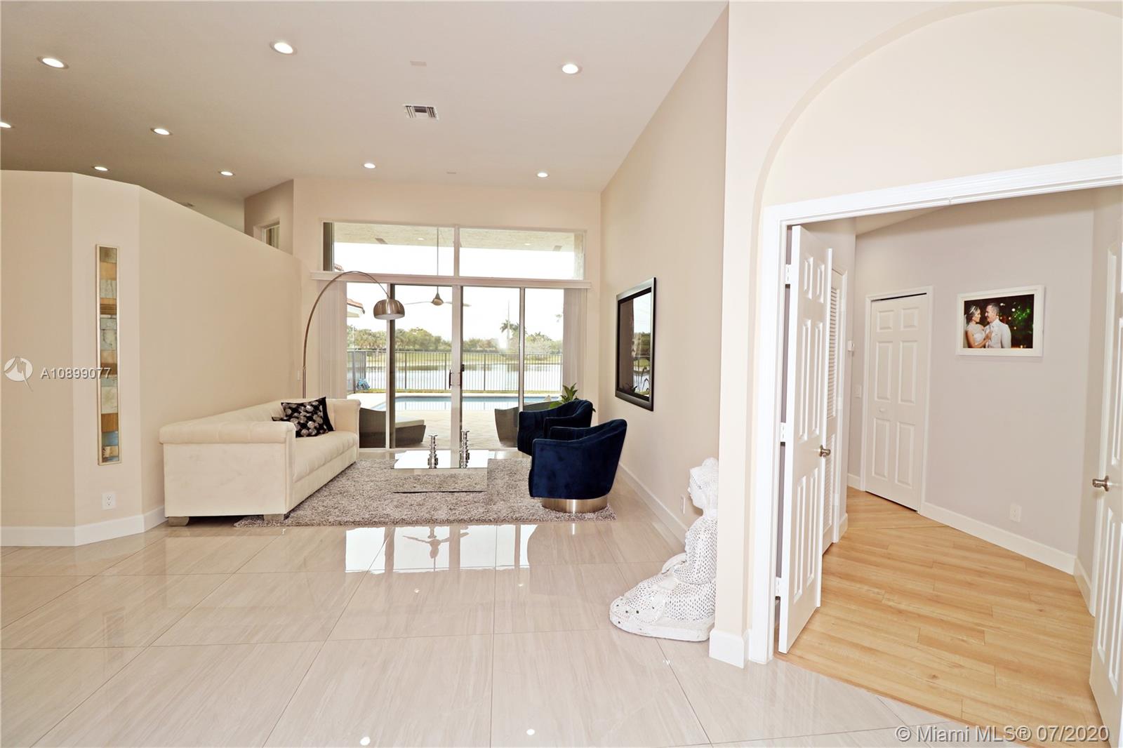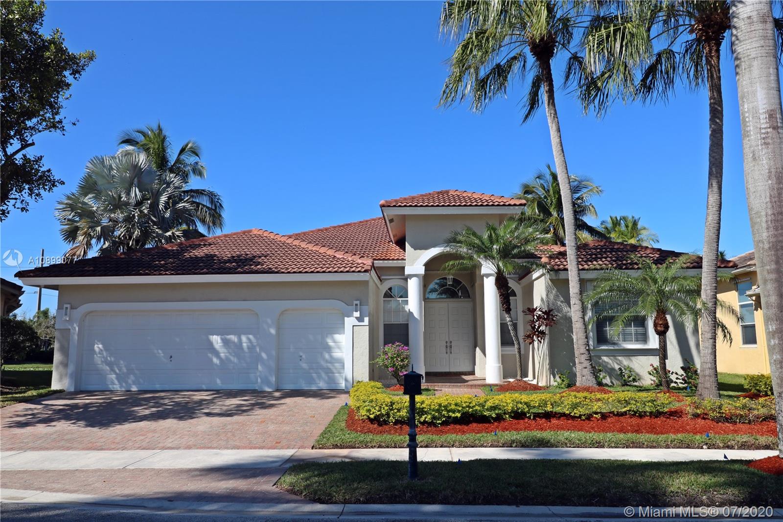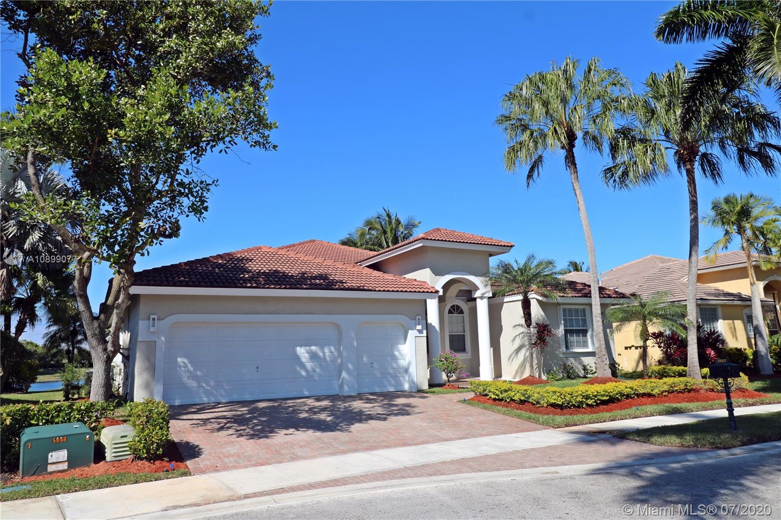 Desirable location in sought-after Weston Hills Country Club, Impeccable 5 bedrooms 3 bathrooms one-story single-family house in a cul-de-sac, a perfect lakefront lot with a spectacular lake view and no buildings on the opposite shore, pool newly resurfaced, large covered lanai, triple floor plan, newer porcelain flooring baseboards a/c unit lights and electric fixtures appliances and much more to list here (see a complete list of upgrades under attachments), three-car garage, 12 feet ceilings, neutral colors with plenty of natural light, family room. laundry room, close to Weston Town Center (-1.5 mile), subdivision with children playground, basketball court, 24 hours guard gated community, country club and golf available. Must see it to appreciate call today to schedule a private showing