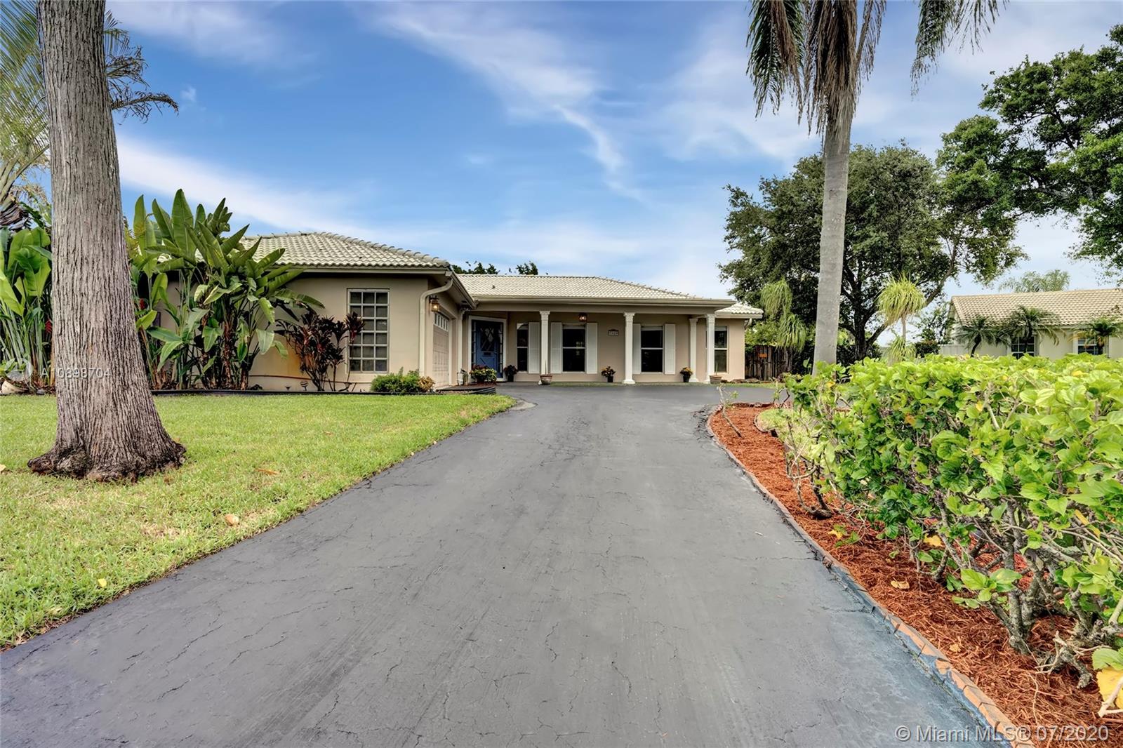 Hidden away on the fringe of the City of Coral Springs, this charming ranch home sits on a lush, leafy oasis in a private cul-de-sac in Broken Woods Estates. Its spacious living area has a wonderful open concept layout. With an updated kitchen and master bath, the entire interior of the home has been freshly painted and updated with new fixtures and window treatments. The roof was replaced in 2007 and with its newer AC System, this home offers great peace of mind. The master suite offers two master baths and all bedrooms are spacious with great closet space. A screened patio overlooks the large lot, which is fully fenced and offers ample room for a pool. Ideally located, this home offers easy access to great shops, dining, entertainment, excellent schools & much more. Don't miss this one