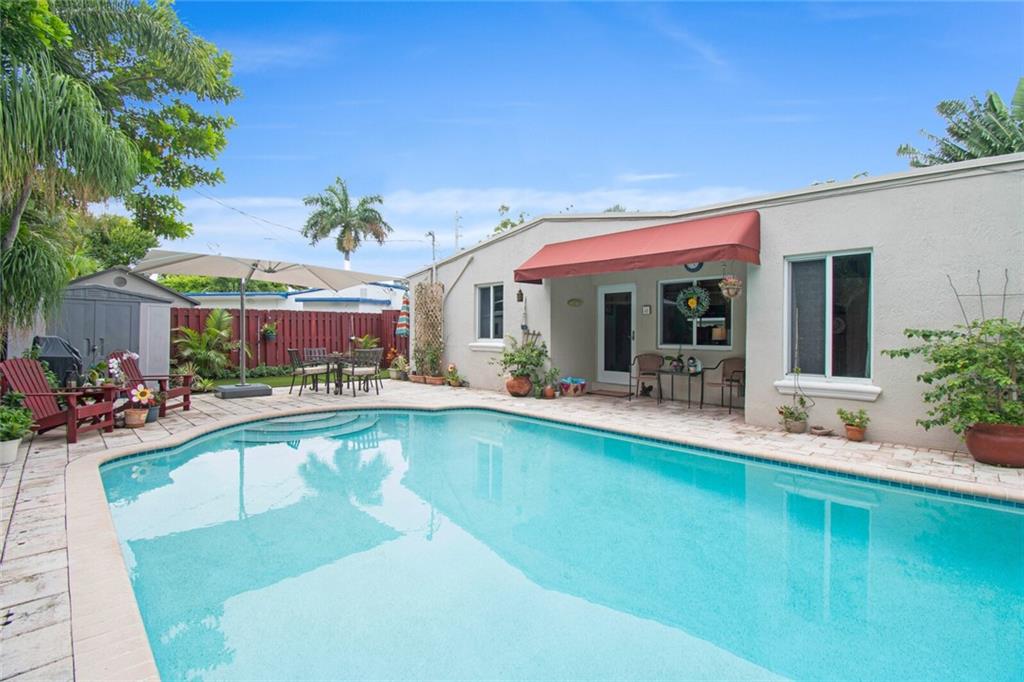 Outstanding Pool Home, a Gem in Sought-After Poinsettia Heights. Split Floor Plan features 3 Beds, 2 Baths, an Updated, Open Kitchen with Wood Cabinets, Stainless Steel Appliances, New Microwave & Disposal, Eat-in Area & Granite Counter-tops. Lushly Landscaping with a Secluded and Private Backyard complete with NEW Pool heater & Cleaner. Additional features Included: Updated Electrical & Mechanical / Indoor Laundry Area / Tile, Wood & Laminate Floors / Custom Window Shades / Wood Fireplace / Thermo-Guard Roof (25 yr Guarantee). Freshly painted interior / 2 New Water Heaters (1 tankless), NEW A/C, Electrical Panel & 50 AMP for a Hot Tub, Wired for Full Generator, Updated PVC pipes to the street, Awnings, ALL Impact Windows and Doors. You don't want to miss this one it will sell fast!