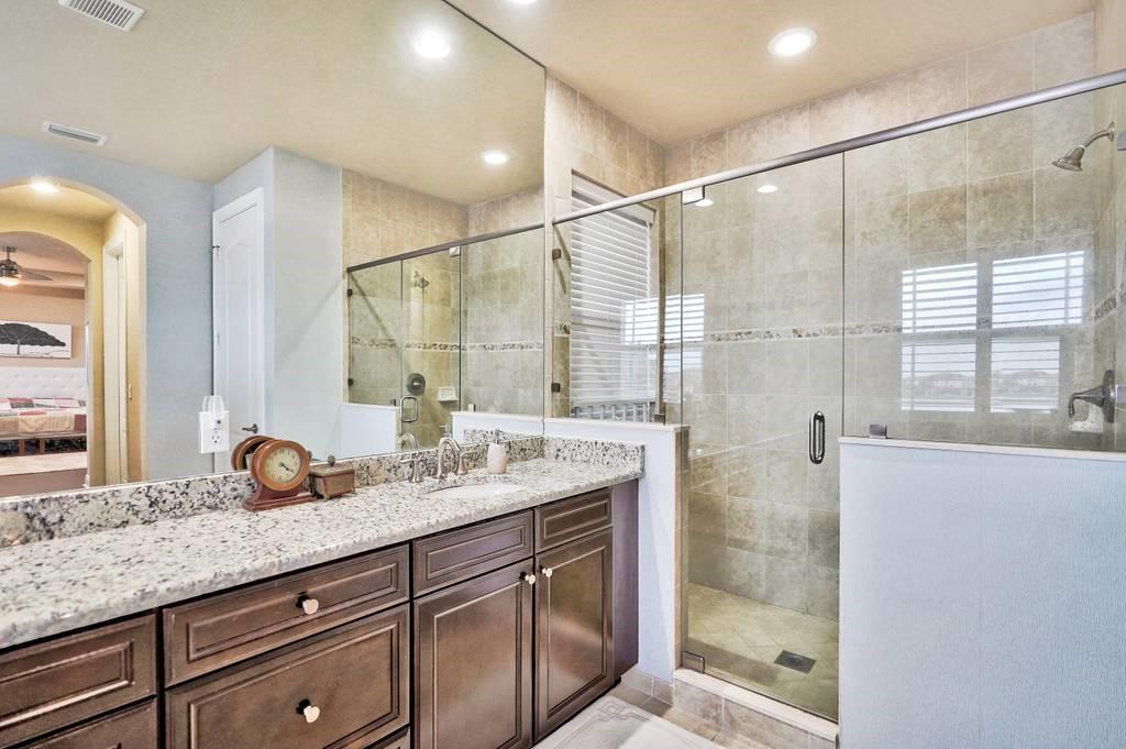 Beautiful salt water pool home on amazing Lake Majesty. Simply Stunning Summit model 5 Bedrooms 4 full baths and bedroom on the first floor in beautiful MiraLago, Impact windows and doors, gas cooking , plantation shutters, Crown molding, custom carpentry, wood stairs and 2nd floor, wallpaper, neutral 20" diagonal tiles, custom closets.Larger lot, fully fenced very private with clusia hedges, with great sunsets and grassy area. Amazing gated community with resort-style amenities including gym, tennis, basketball, billiards room, tot lots, kids water park and amazing party and ballroom. A+schools. Better than new.Showing to being August 1st, showings 12-6 Weekends and 11-5 weekdays, use ShowingTime.