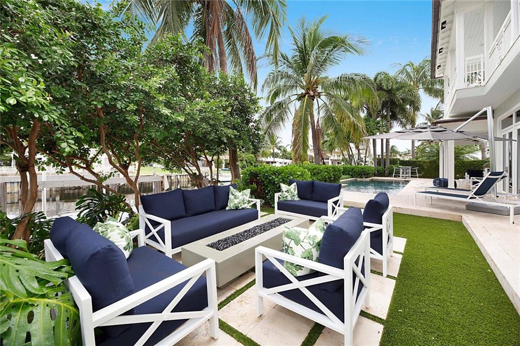 This home is the perfect meld of tasteful contemporary and rustic charm,her dream home ! Everything from the copper gutters and the la Cornue oven to the steam shower and Lutron system is top of the line and fits seamlessly into this impeccably designed home. Nothing was overlooked from a design standpoint; incredible finishes. The great room has a built-in entertainment center, tongue and groove cypress ceilings and a wall of French doors overlooking the outdoor entertaining space. Out back you will find a covered Lania, outdoor kitchen, sitting area w/ gas fire pit, and expansive pool w/ raised shelf for relaxing. The seawall cap is raised, dock and seawall redone, situated on 100' of deep water w/ no fixed bridges, only 5 mins to the Hillsboro Inlet; his dream home too!