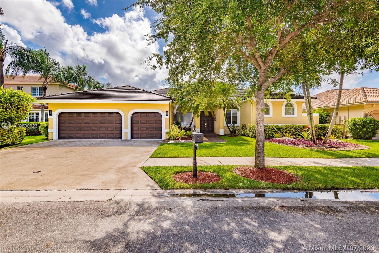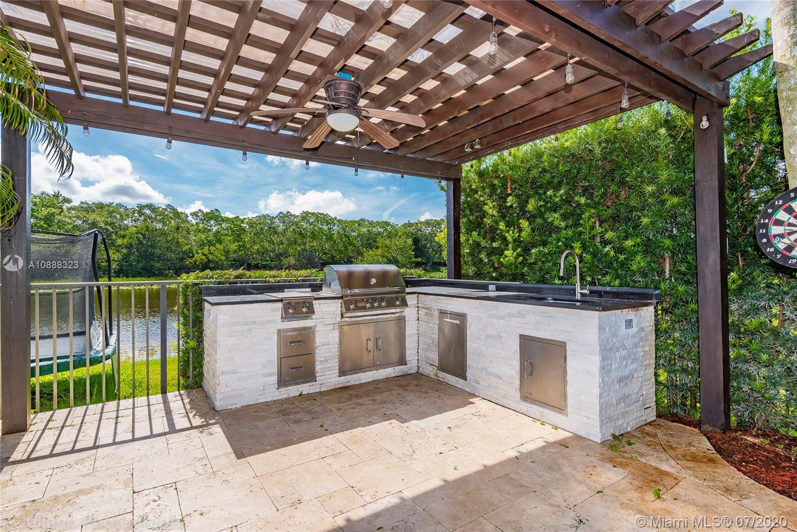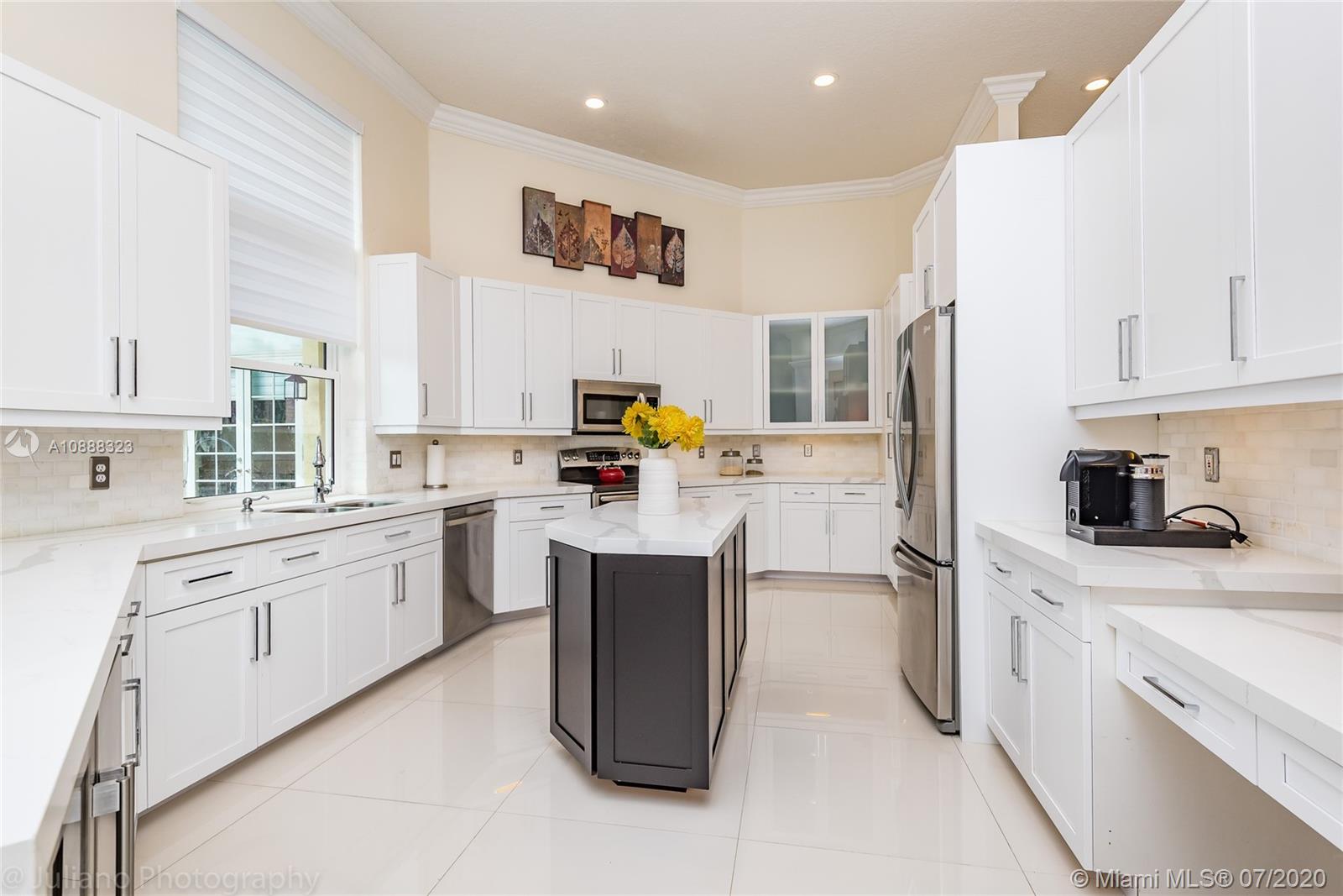 Custom built expanded Kingsley model features four spacious bedrooms plus an office and playroom with 3.5 baths. Enjoy lush tropical landscaping and 11.000 square foot lot fully fenced with expansive renovated salt pool with intelligent control trough your mobile, extended paver pool deck, summer kitchen under a gazebo and long unobstructed lake views with no neighbors behind. Master bedroom with soaring ceilings. Recently renovated Contemporary kitchen with white marble countertops, stainless steel appliances flows to family room with sliders to yard, neutral tones throughout. BRAND NEW custom master bath with vessel tub and oversized shower. This home shows bright and airy. Enjoy extensive crown moldings, marble floors, hurricane shutters, 3 car garage. Must See!