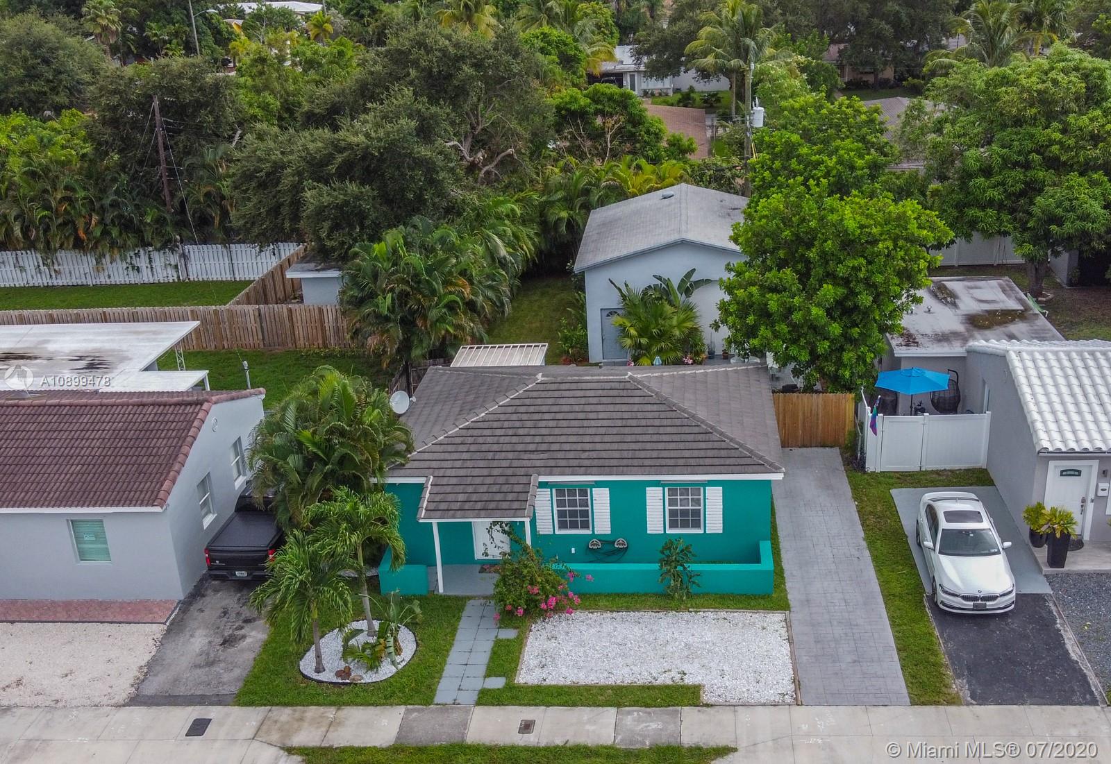 Enjoy outdoor living at its finest with your own private tropical oasis! This light and bright, freshly painted 2 bed, 1 bath home features an open concept layout w/tile flooring throughout spacious living areas, Newer Tile Roof (2016) & generously sized kitchen with newer stainless steel appliances (2016). Enjoy the outdoors w/an extended patio perfect for BBQ, large fenced yard & ample room for parking, this home is ready for entertaining! The huge 4+ car detached garage is perfect for car collectors, mechanics, land/water toys or convert into extra living space (A/C & electric in place)! Located in one of Fort Lauderdale’s most desired communities with a great location close to shopping, dining, beaches, parks & more!