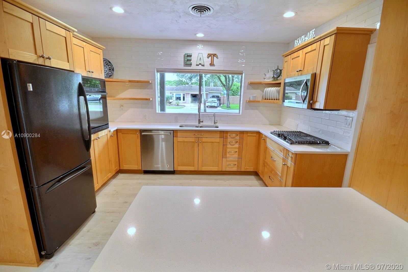 TASTEFULLY REMODELED HOME IN SOUGHT-AFTER COOPER CITY ON SERENE CANAL. LIGHT AND BRIGHT HOME FEATURES BEAUTIFULLY UPDATED KITCHEN WITH MODERN SHAKER STYLE CABINETRY, FLOATING SHELVES, QUARTZ COUNTERS, GLASS SUBWAY TILE BACKSPLASH TO THE CEILING, GAS RANGE & WALL OVEN. GORGEOUS MODERN WHITE OAK LAMINATE THROUGHOUT. AWESOME FLOOR PLAN WITH 2 MASTER SUITES, PLUS 2 BEDS & FULL BATH. ELEGANT PAINT AND ACCENTS INCLUDING NEW CLOSET DOORS, A SLIDING BARN DOOR, RECESS LIGHTING AND CROWN MOLDING. GORGEOUS BATHROOMS WITH MODERN VANITIES. LARGE LAUNDRY ROOM, SPACIOUS FENCED IN YARD FEATURES A COVERED SCREENED-IN PATIO & FIREPIT. SIDE PARKING ACCOMMODATES A RV, 1 CAR GARAGE AND LONG DRIVEWAY. ENJOY CLOSE PROXIMITY TO PARKS, RECREATION, COOPER CITY SCHOOLS, AND TO I-75. NO HOA.