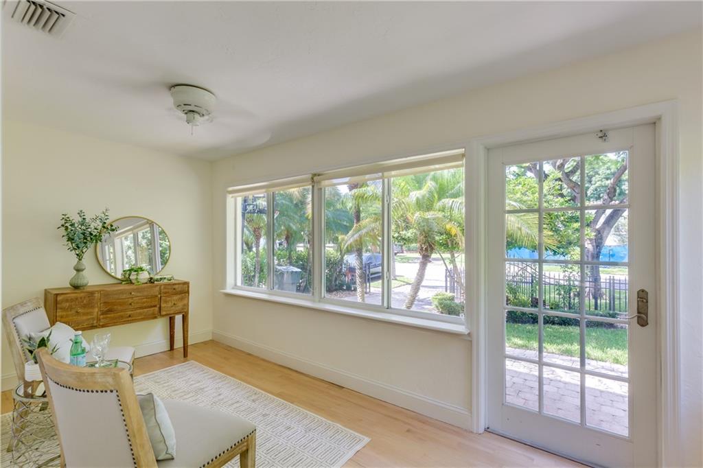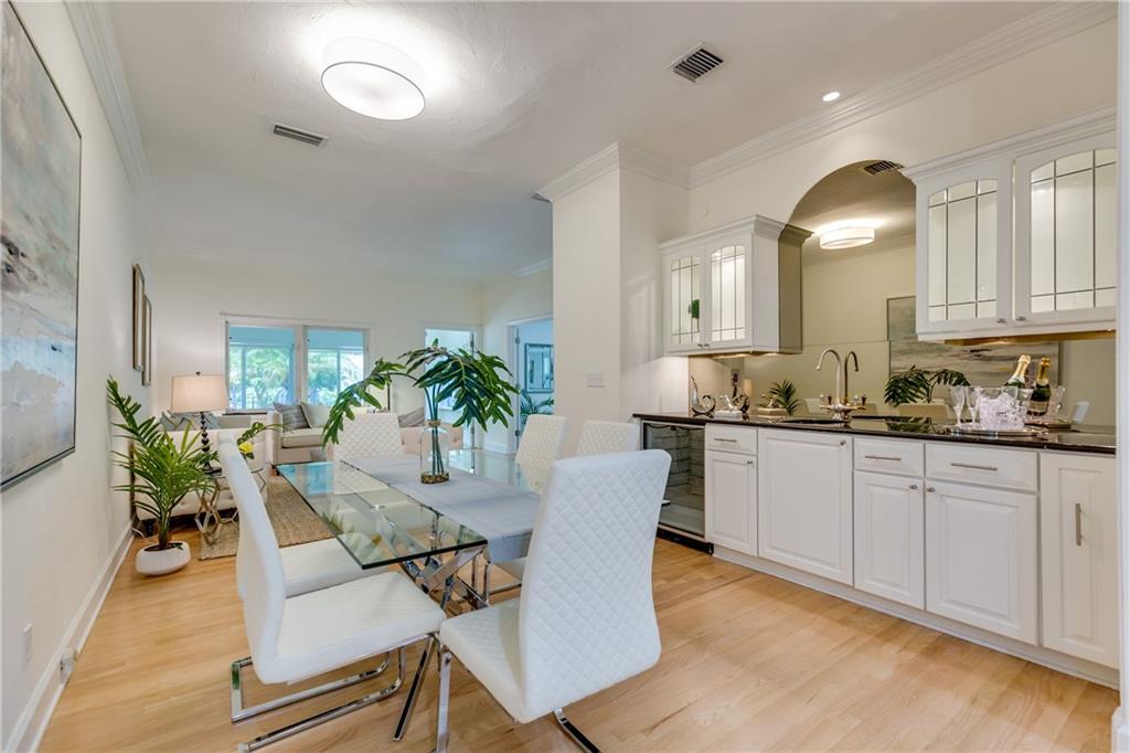 Gated & charming, BEAUTIFUL North Rio Vista Blvd 4 bedroom, 3 bath pool home.Originally built in 1947, residence was architecturally renovated in 2001 seamlessly adding a spacious family room,spectacular gourmet kitchen w/gas cooktop, double ovens, farm sink, an abundance of custom cabinetry.The grand master suite has vaulted ceilings & French doors that open to the private pool. Master bath w/soaking tub.Built in wet-bar with custom cabinets in dining area.Impact windows/doors, updated electrical/plumbing,Plantation shutters. Refinished hardwood floors,custom millwork & freshly painted throughout. Enclosed front porch area.One car garage, laundry/storage room.Beautiful shade trees in front that frame the home perfectly. Mature privacy hedge adorns backyard pool and patio area. A must see!