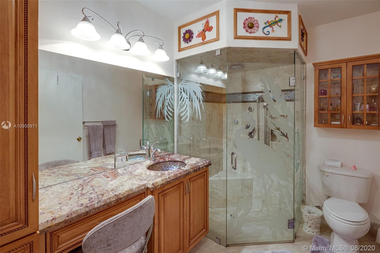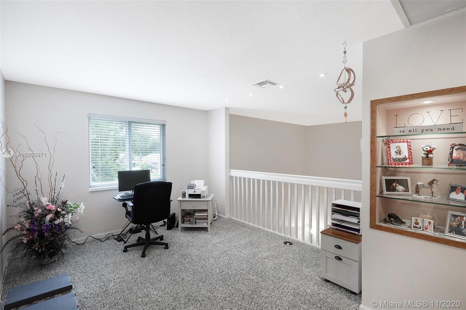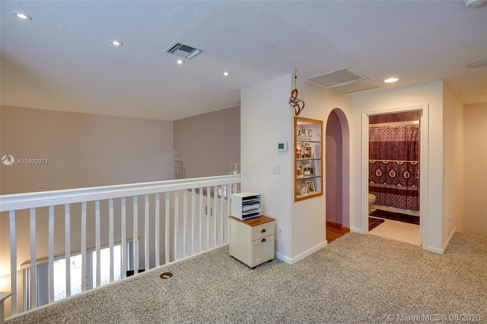 Absolutely STUNNING, TOP OF THE LINE, NO EXPENSE SPARED on this METICULOUSLY MAINTAINED HOME!!! All impact windows & doors. Brand new roof 10yr warranty 130mph shingles. Gorgeous w/ bonus loft upstairs! Master bedroom downstairs w/ custom closet & custom granite master bath w/ frame less shower & crystal lighting. Private location,dead end street,amazing views. Kitchen w/ 14" deep cabinets & custom LED lighting. Travertine tile floors down. Gorgeous landscaping w/ mango, avocado & banana fruit bearing trees& outdoor lighting. Upstairs is just as glorious! Bathroom has custom cabinets, granite & crystal lighting, LED lighting in loft, spacious attic w/ ladder & flooring. Attic in garage w/ ladder & overhead storage. Security camera system. Buyer may need to pay above appraised value.