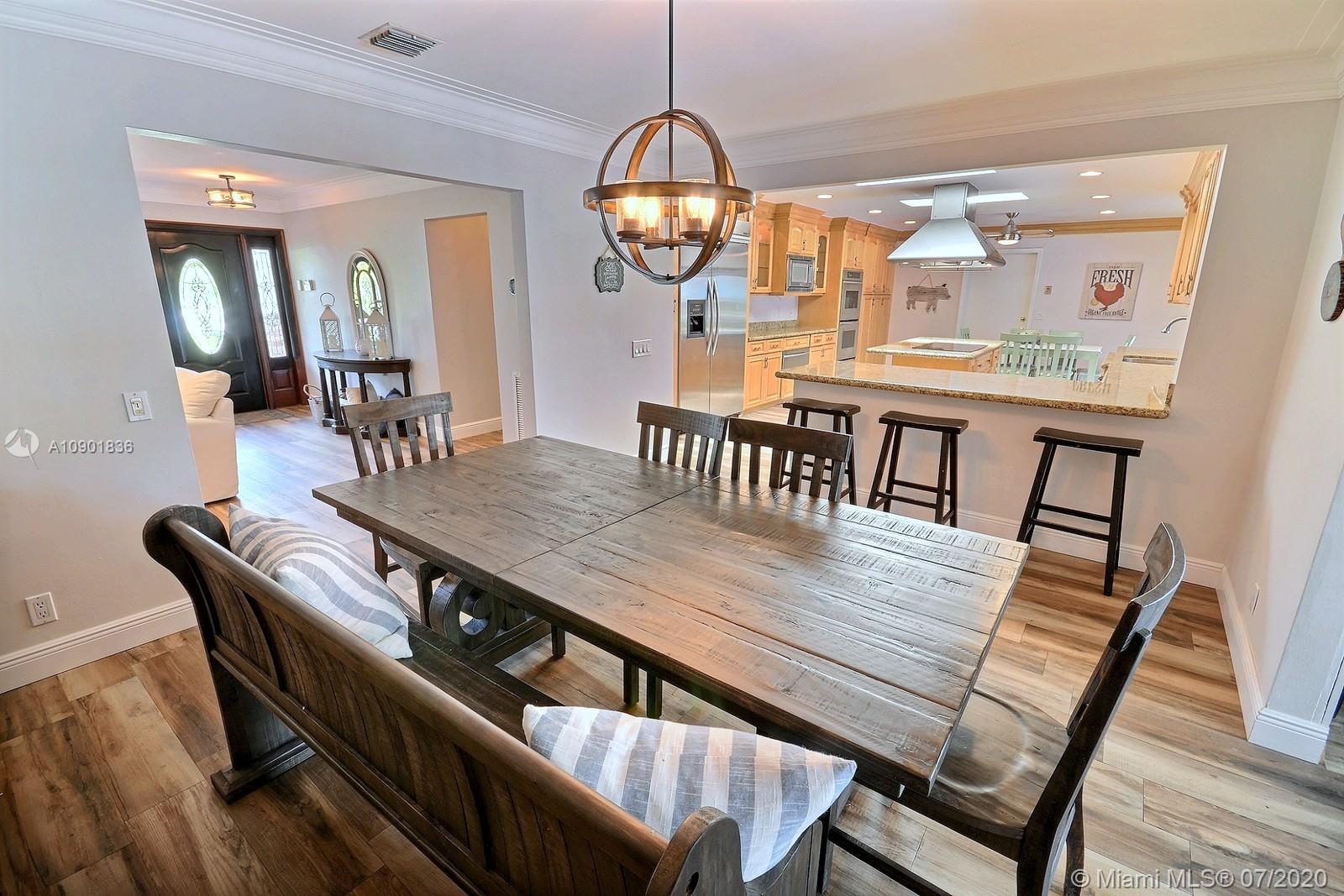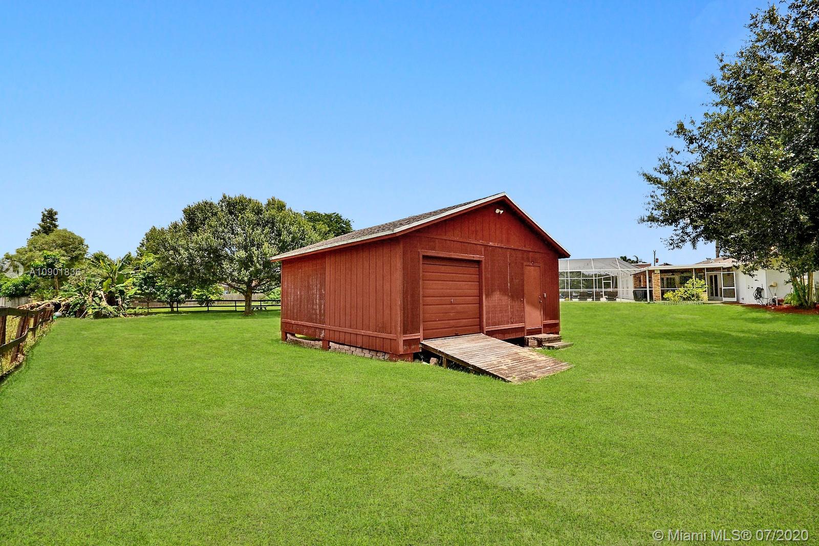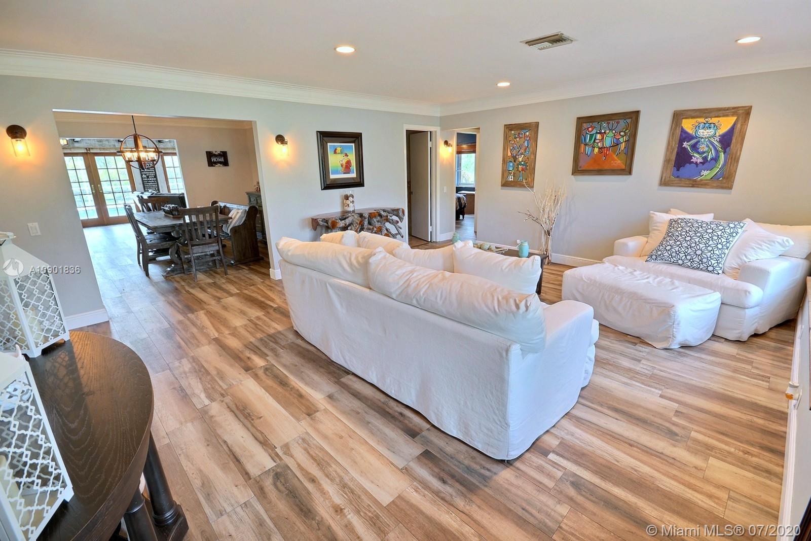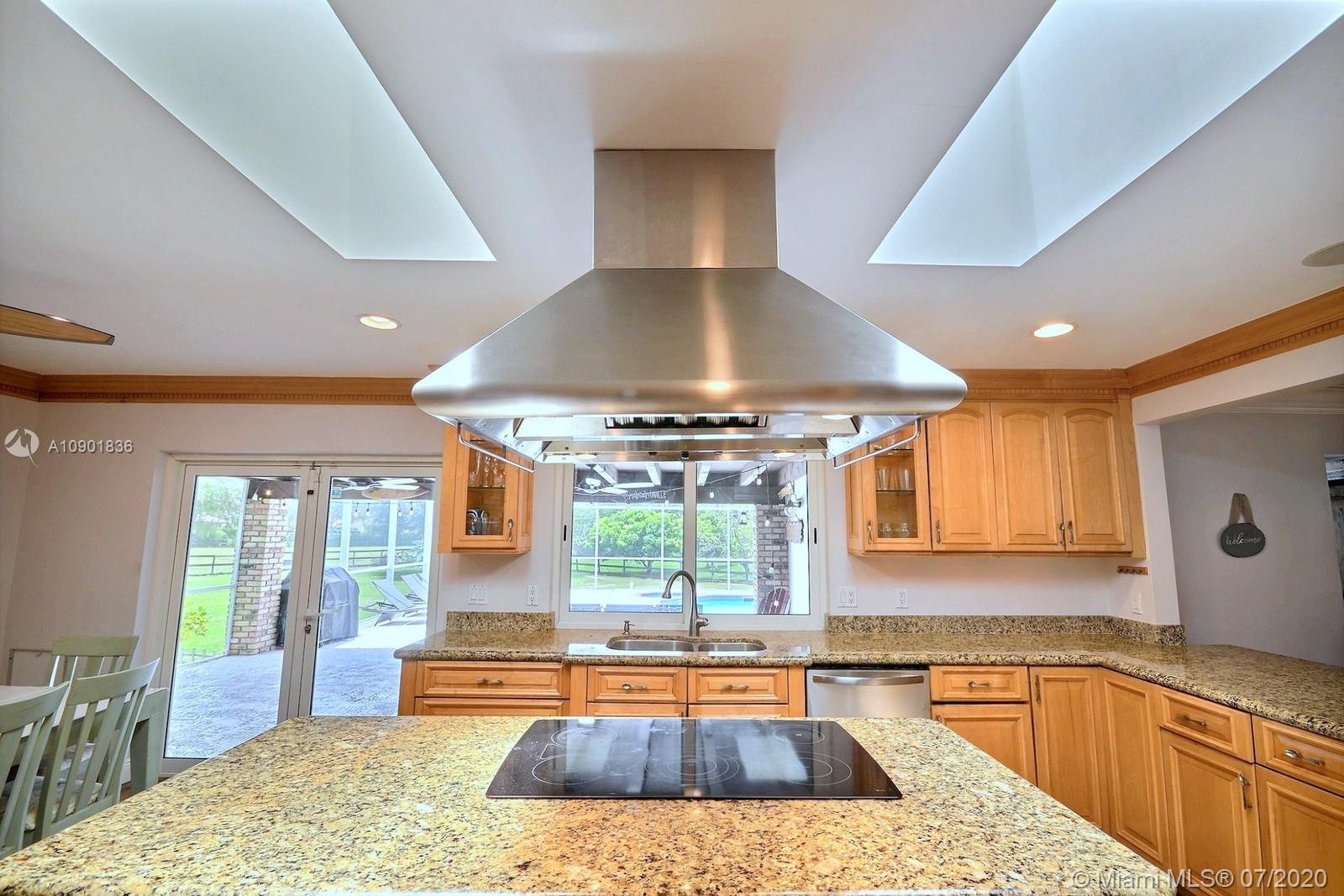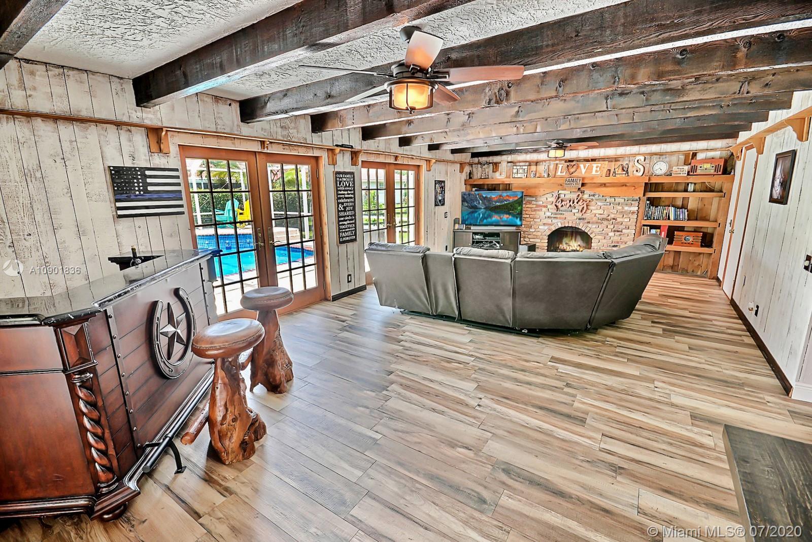 WELCOME TO THIS SPECTACULAR HOME IN THE SOUGHT-AFTER EQUESTRIAN-FRIENDLY COUNTRY ESTATES COMMUNITY OF SOUTHWEST RANCHES. HOME FEATURES A WELCOMING FRONT ENTRY WITH BAY WINDOW, MODERN WOODLIKE PLANK FLOORING, CROWN MOLDING RECESS LIGHTING & CEILING FANS. STUNNING EAT-IN KITCHEN IS ILLUMINATED BY NATURAL LIGHT FROM 2 SKYLIGHTS W WOOD CABINETS, GRANITE TOPS, STAINLESS APPLIANCES INCLUDING WARMING DRAWER & DOUBLE WALL OVER. GORGEOUS WOOD-BEAMED FAMILY ROOM WITH ROMANTIC FIREPLACE OPENS TO THE COVERED PATIO & LARGE SCREENED-IN HEATED POOL & SPA W SOLAR PANELS. SPACIOUS MASTER BED W ENSUITE MASTER BATH. LARGE FULLY FENCED YARD W 500 SQ FT BARN (APPROXIMATELY) W WATER & POWER (AND ITS OWN ELECTRICAL BOX), SHED, ALL SITUATED ON A 34,000 SQ FT CORNER LOT W 2 CAR GARAGE & CIRCULAR DRIVEWAY. NO HOA.