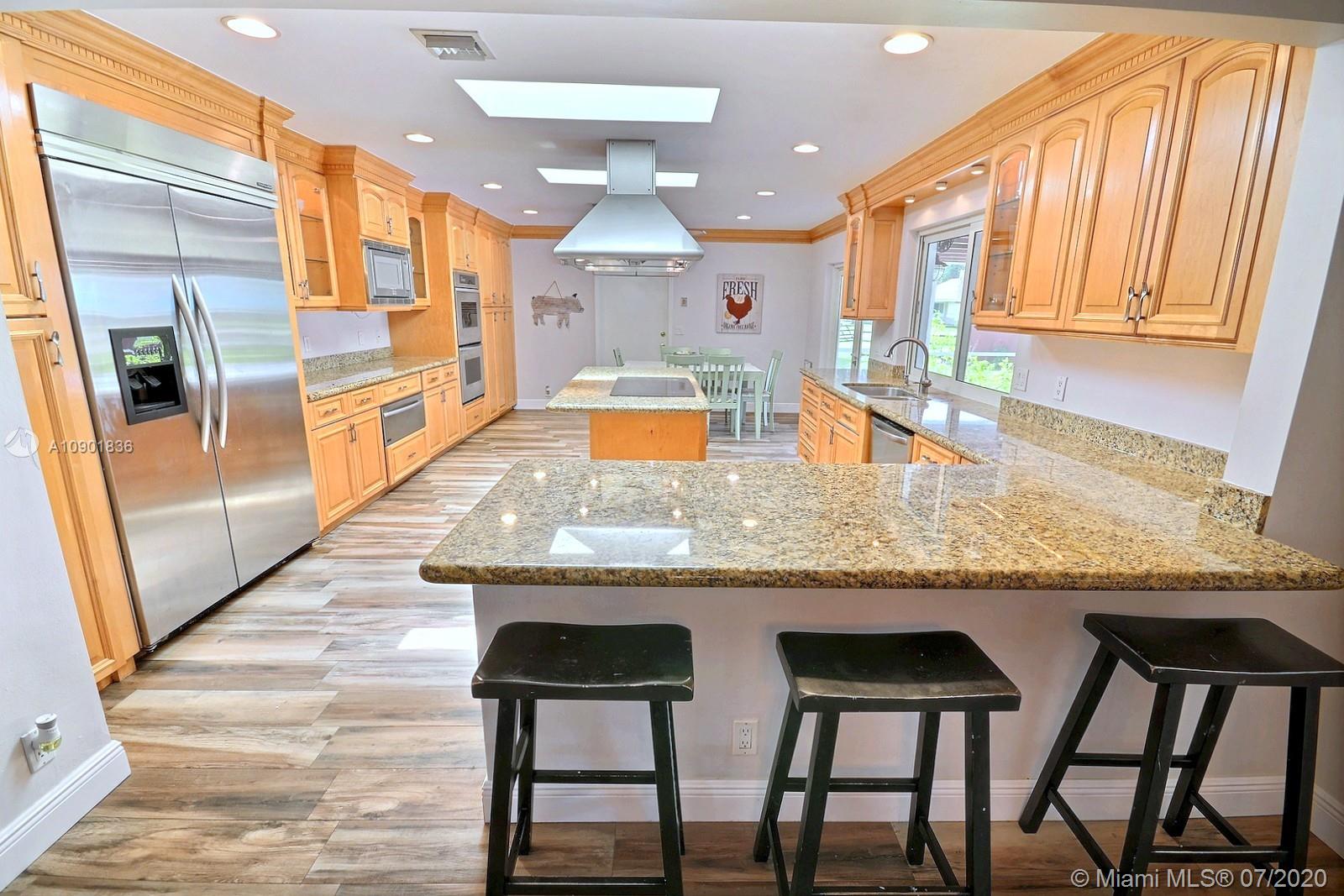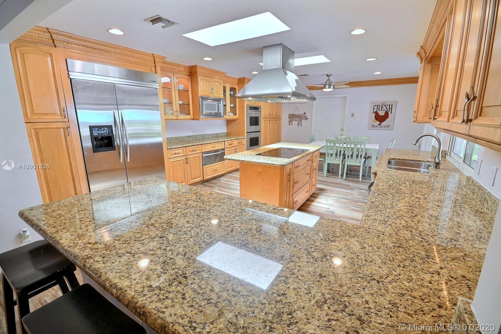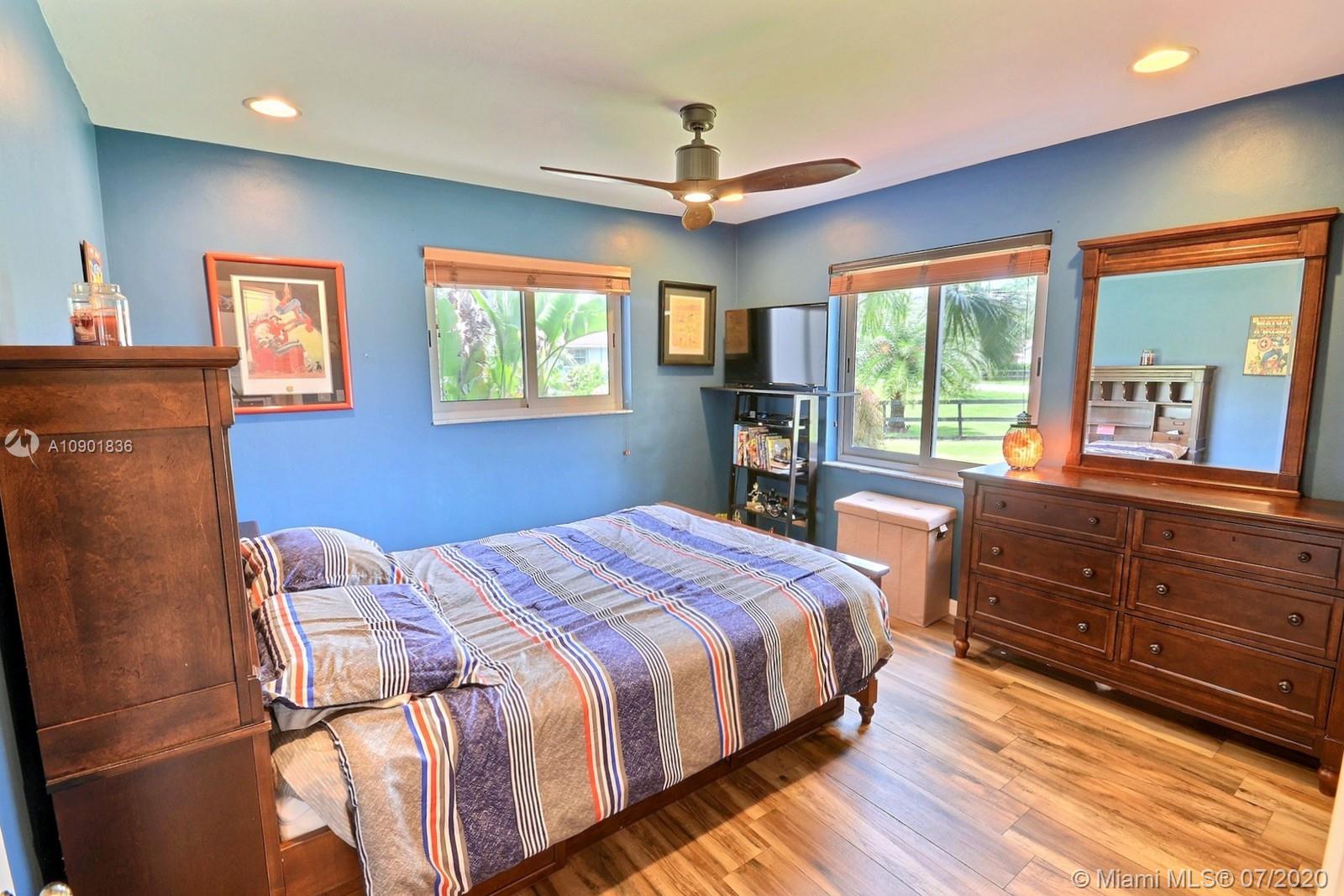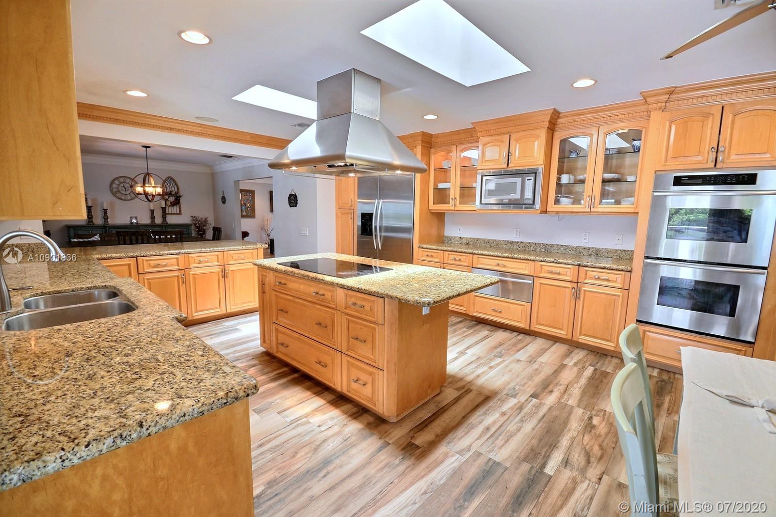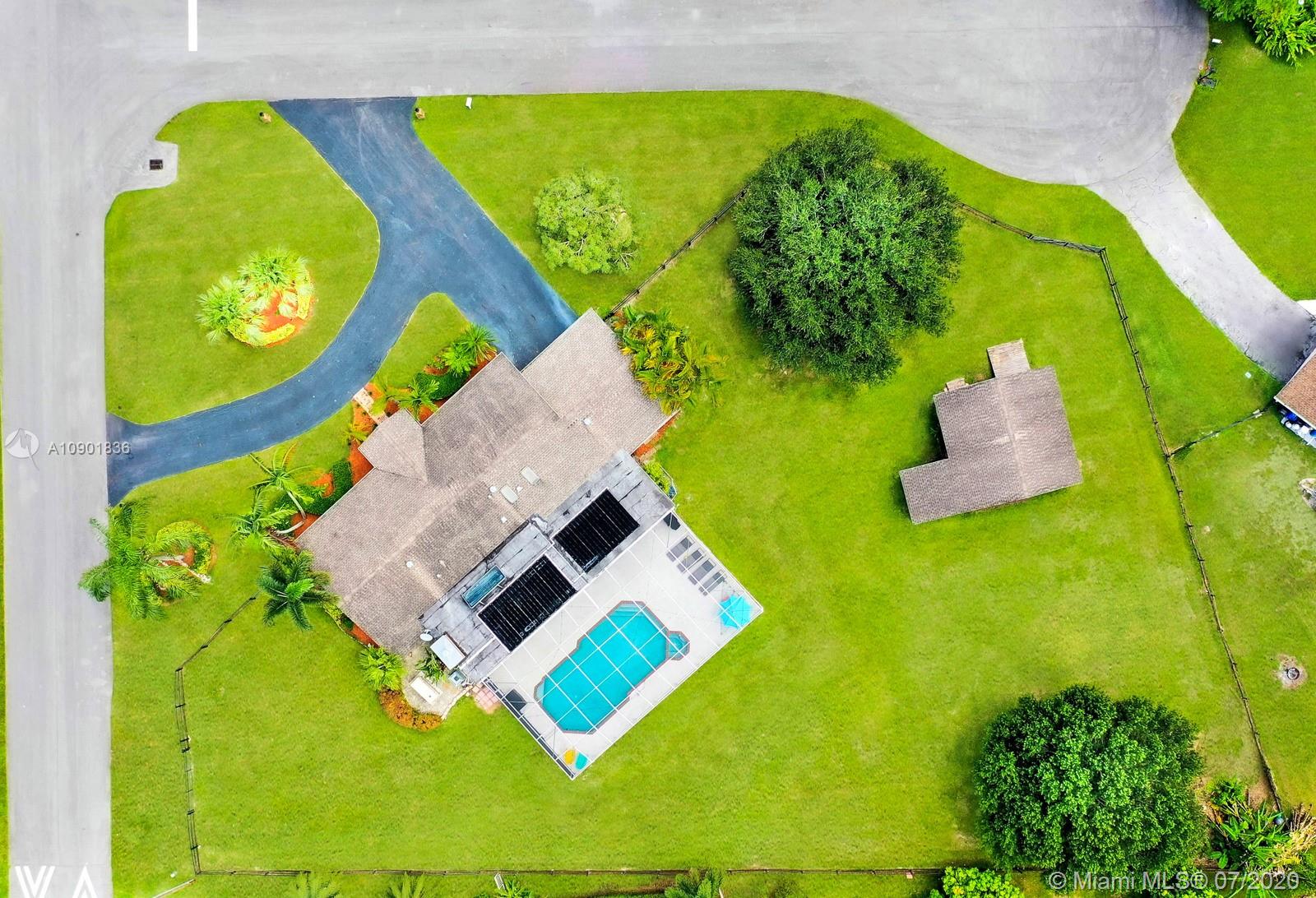 WELCOME TO THIS SPECTACULAR HOME IN THE SOUGHT-AFTER EQUESTRIAN-FRIENDLY COUNTRY ESTATES COMMUNITY OF SOUTHWEST RANCHES. HOME FEATURES A WELCOMING FRONT ENTRY WITH BAY WINDOW, MODERN WOODLIKE PLANK FLOORING, CROWN MOLDING RECESS LIGHTING & CEILING FANS. STUNNING EAT-IN KITCHEN IS ILLUMINATED BY NATURAL LIGHT FROM 2 SKYLIGHTS W WOOD CABINETS, GRANITE TOPS, STAINLESS APPLIANCES INCLUDING WARMING DRAWER & DOUBLE WALL OVER. GORGEOUS WOOD-BEAMED FAMILY ROOM WITH ROMANTIC FIREPLACE OPENS TO THE COVERED PATIO & LARGE SCREENED-IN HEATED POOL & SPA W SOLAR PANELS. SPACIOUS MASTER BED W ENSUITE MASTER BATH. LARGE FULLY FENCED YARD W 500 SQ FT BARN (APPROXIMATELY) W WATER & POWER (AND ITS OWN ELECTRICAL BOX), SHED, ALL SITUATED ON A 34,000 SQ FT CORNER LOT W 2 CAR GARAGE & CIRCULAR DRIVEWAY. NO HOA.
