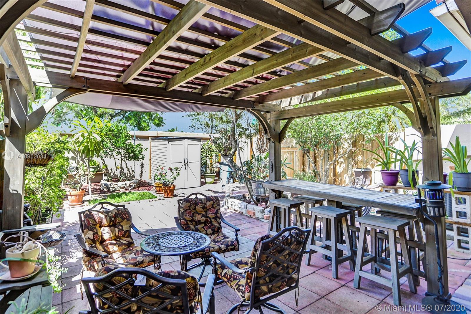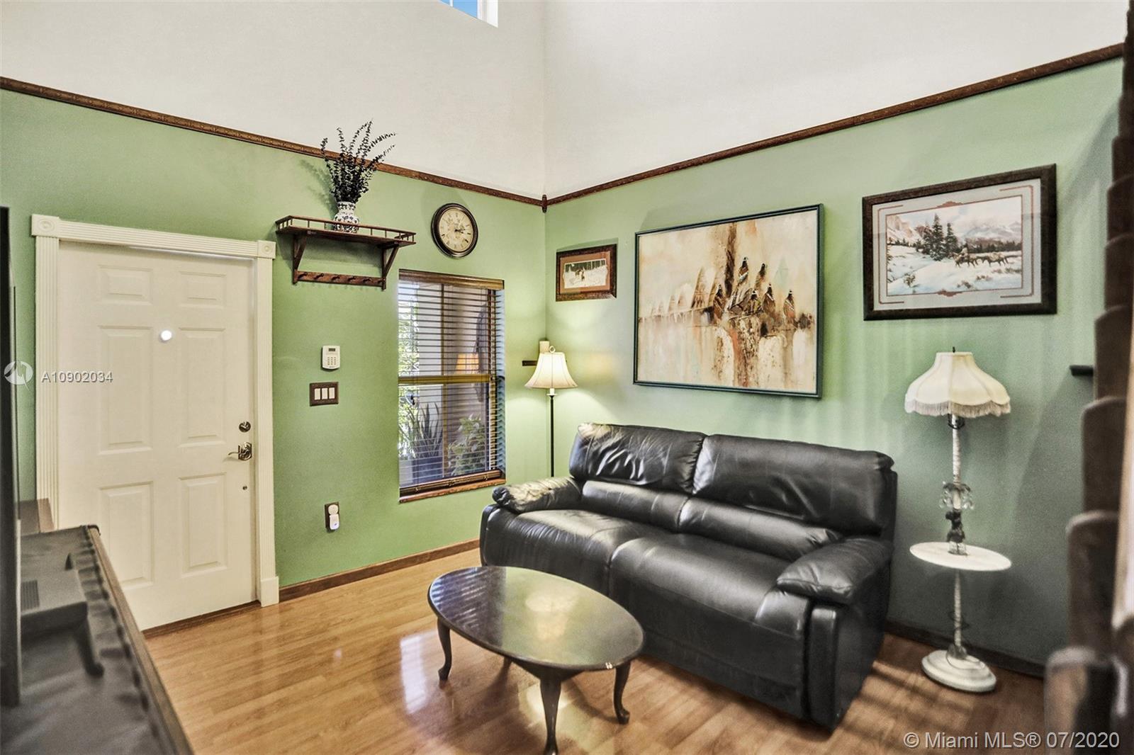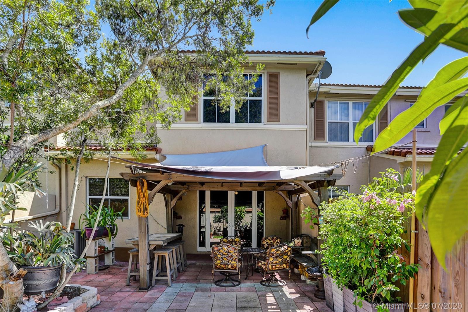 Rarely available 2/2.5 townhome in Sunrise. You will be welcomed by the beautifully landscaped exterior. Vaulted ceilings in the main living area, laminate flooring throughout, all bathrooms with updates. Oversized walk-in closets. Kitchen features custom pull outs in the cabinets, updated appliances. Brand new washer, insulated impact garage door, some windows are impact and the rest have shutters. FULL HURRICANE PROTECTION. Custom french doors lead you to the expansive entertainers dream patio. A year old pergola, beautiful landscaping will make you want to live out back all year long. PRIDE OF OWNERSHIP ORIGINAL OWNERS. Highly desired area of Sunrise with Weston Schools. Low HOA fee that covers all exterior, including insurance, tot lot, and pool. Easy access to highways.