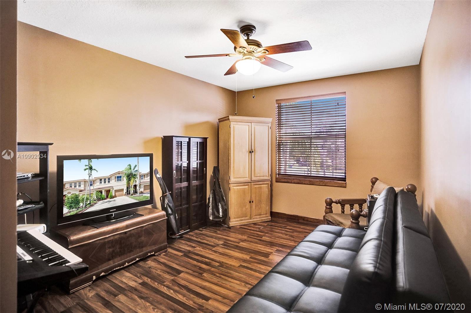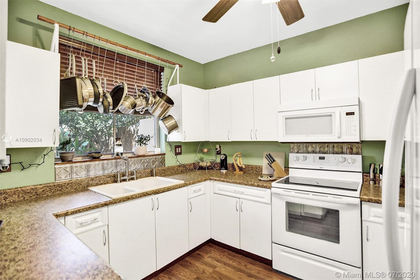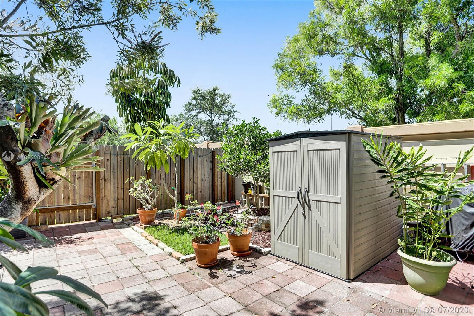 Rarely available 2/2.5 townhome in Sunrise. You will be welcomed by the beautifully landscaped exterior. Vaulted ceilings in the main living area, laminate flooring throughout, all bathrooms with updates. Oversized walk-in closets. Kitchen features custom pull outs in the cabinets, updated appliances. Brand new washer, insulated impact garage door, some windows are impact and the rest have shutters. FULL HURRICANE PROTECTION. Custom french doors lead you to the expansive entertainers dream patio. A year old pergola, beautiful landscaping will make you want to live out back all year long. PRIDE OF OWNERSHIP ORIGINAL OWNERS. Highly desired area of Sunrise with Weston Schools. Low HOA fee that covers all exterior, including insurance, tot lot, and pool. Easy access to highways.