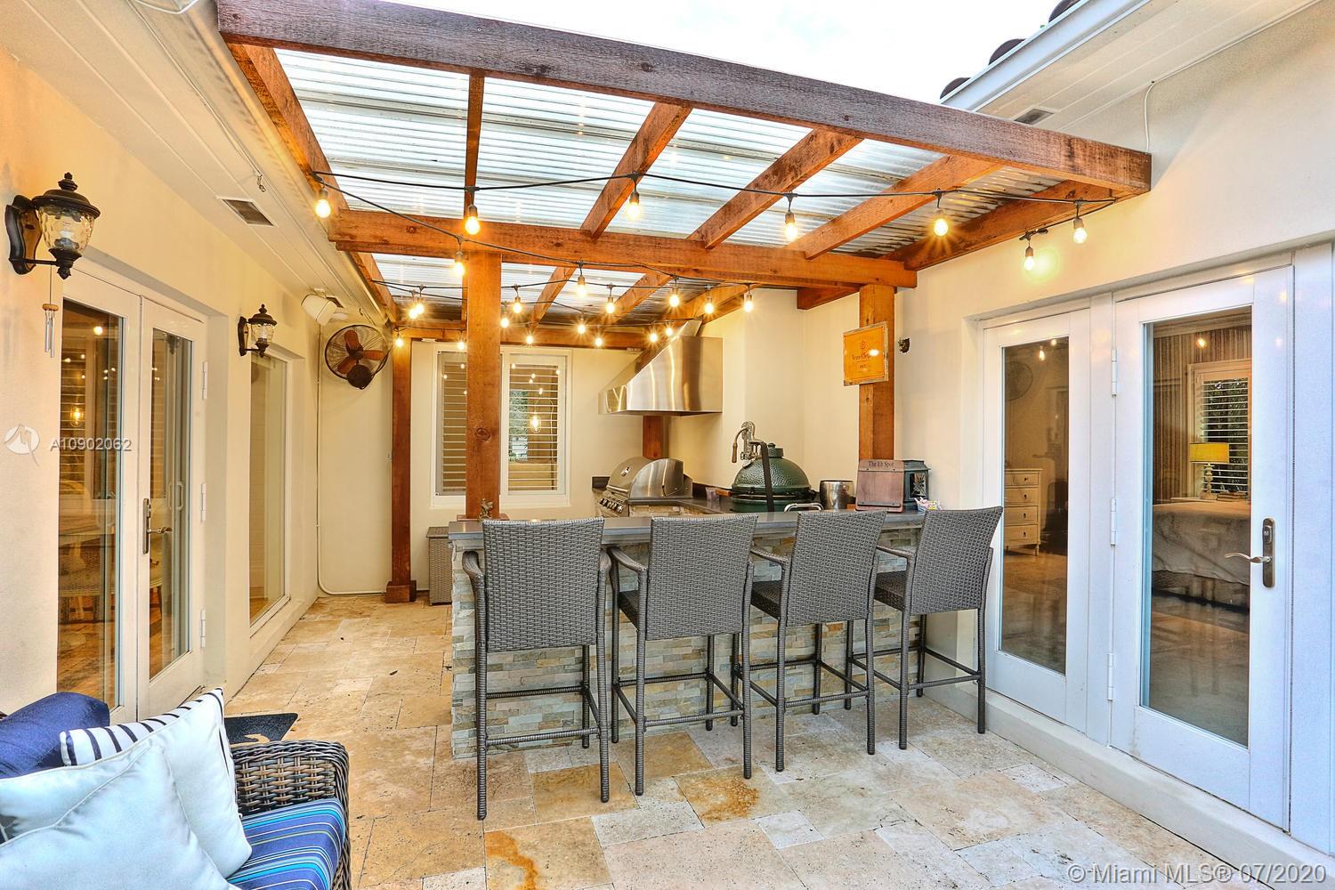 This spectacular graceful smart-home has it all – boundless beauty & all of today’s conveniences on a wonderful South Gables street. Impact windows & doors, gorgeous updated kitch, huge luxurious master suite & so much more! Gorgeous plantation shutters on all windows, hardwood flrs, vaulted wood-beamed ceilings, spacious bedrooms, awesome laundry rm, light & bright spaces. The kitch opens to the inviting, bright fam rm & passes through to the formal din & liv rms. The HUGE master suite has 2 closets and a big, comfortable bathrm w private water closet. A sparkling new pool & brick patio in back are the centerpiece for the summer. The pool is both heated AND air conditioned-it’s a Miami dream come true! Enjoy a new summer kitch complete w built in Green Egg, gas BBQ, ice chest & fridge.