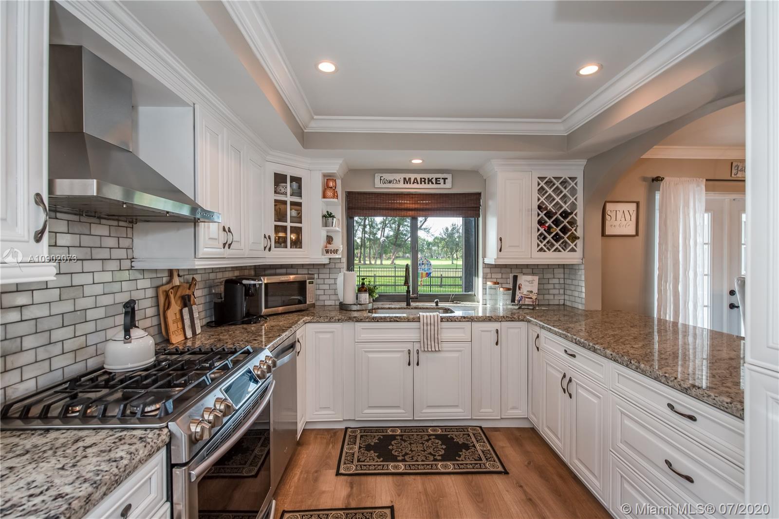 This fully remodeled, move-in ready home has it all, plus a breath-taking view of the golf course. Soaring ceilings, beautifully remodeled kitchen with granite counters, wood cabinets, marble backsplash, new SS appliances, and a gas range. All 3 bathrooms have been remodeled. Impact windows. Gorgeous laminate floors throughout. Custom front door and french doors. New pavers in front. Stunning pool, travertine patio, roof equipped with solar panels that can provide free pool heating. Large backyard great for entertaining, TV outside, custom deck and outdoor shower. Newer roof. AC installed 2014. Google Nest system equipped (including smoke and CO detector), keypad front door entry. Located in desirable Arbor Green community, conveniently located near shops & restaurants.