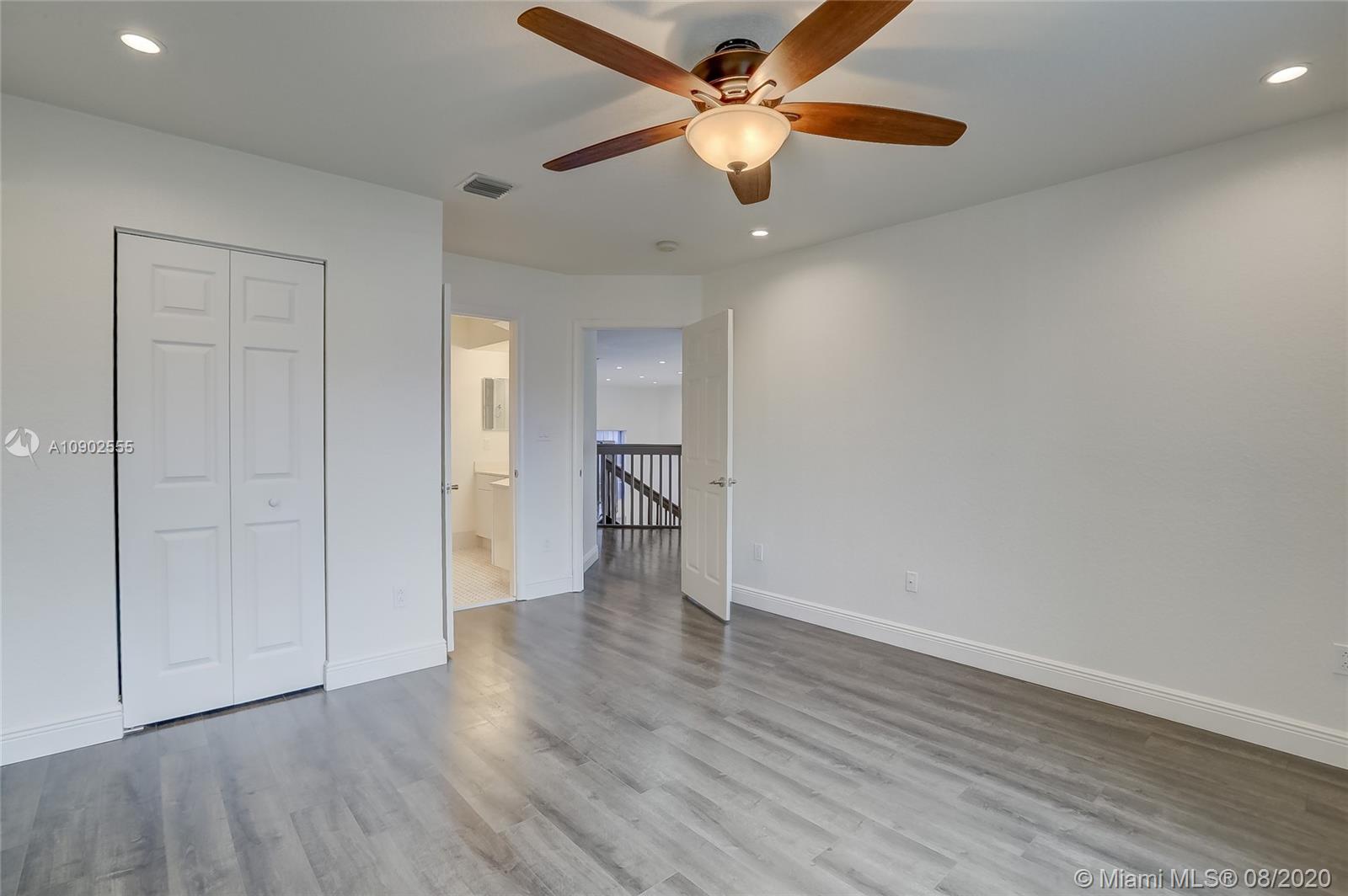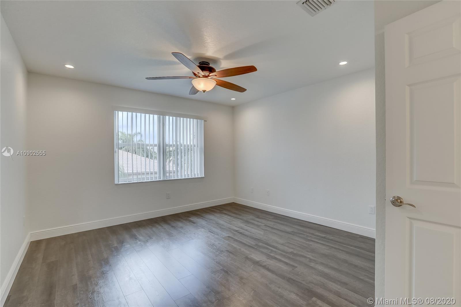 Amazing home that has just been remodeled. New High end kitchen cabinets quartz counter top and new stainless steel appliances. New flooring thru out entire house. White large tile floor on 1st floor and laminate wood floor upstairs. One bedroom and full bath on first floor. Main bedroom features large walk-in closet and spaces bathroom and a walk out large balcony. House has been freshly painted inside and outside. House is move in ready. Located in a gated community with great amenities for active family. Easy to show. Call today. HOA includes Cable, Internet, Home Alarm, Grass cut, Irrigation system and all community amenities. Pool, Gym, Basketball courts, Tennis courts and club House.