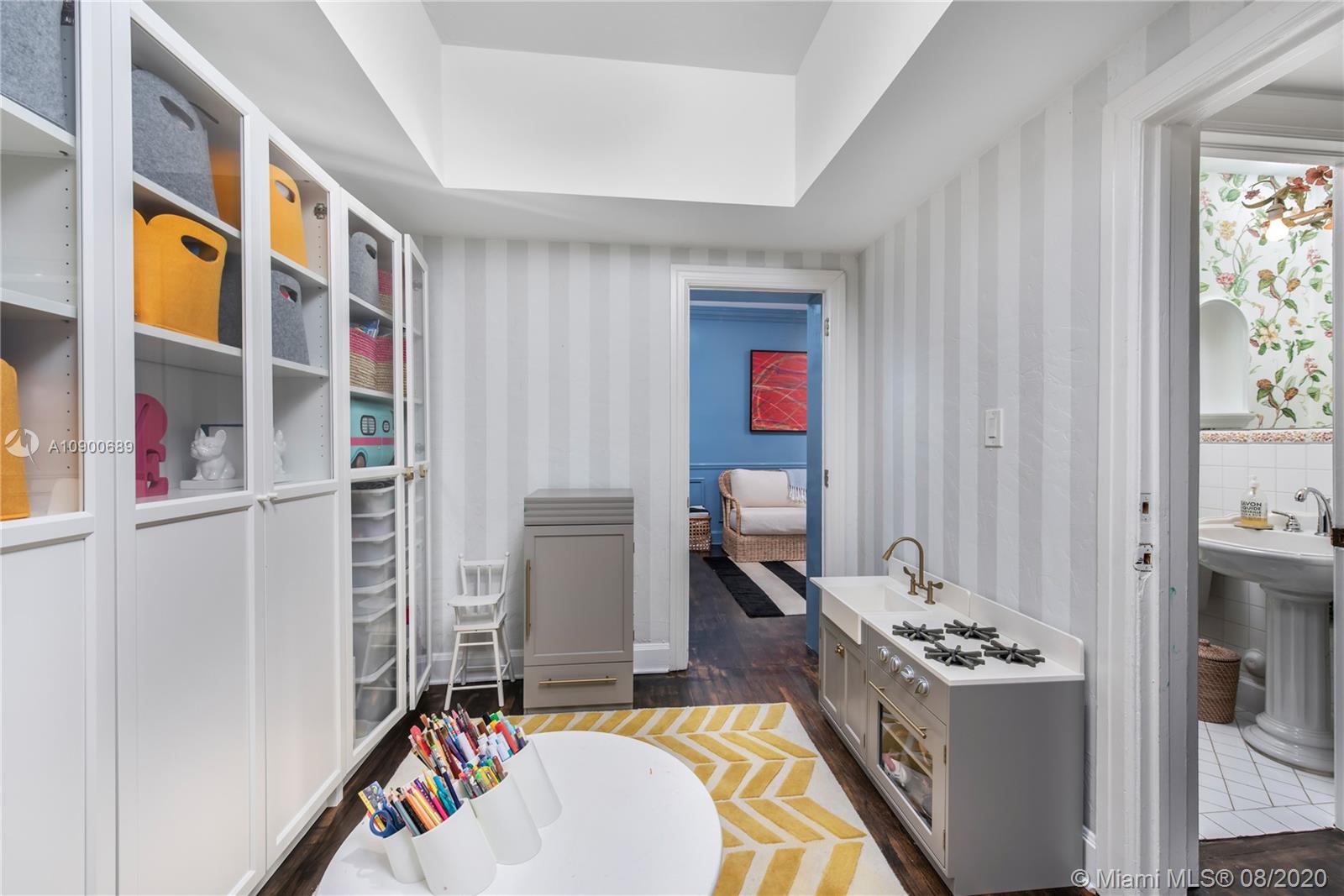 This gracious two-story home in heart of Coral Gables is right out of the pages of Elle Décor! Featuring a grand living room with fireplace, dining room swathed in grasscloth, lovely screened-in porch, dedicated playroom, cheery blue-lacquered den, kitchen w/Thermador & Subzero appliances, eat-in breakfast area & oversized family room, the impeccably designed spaces offer plenty of room for both formal entertaining & casual family time. Master suite + 2 bedrooms & hall bath upstairs; additional 1/1 downstairs w/private entrance is ideal as guest room/office. The beautifully landscaped lot features a spacious backyard, patio, pool house & free-form pool. Impact glass throughout, 2 car garage & incredible location on a tree-lined street near the Biltmore Hotel complete this special property.
